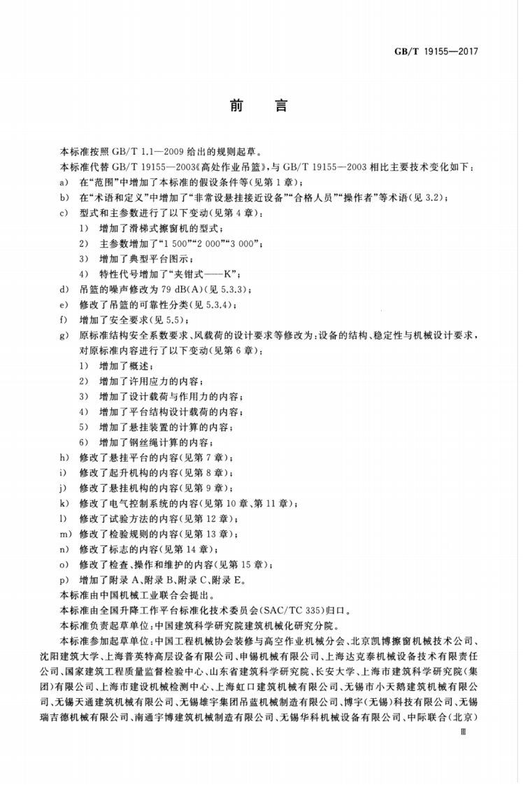 高处作业吊篮Temporarilyinstalledsuspendedaccessequipment348072@abc10天前发布关注私信22.43MB76页049高处作业吊篮Temporarilyinstalledsuspendedaccessequipment此内容为付费资源,请付费后查看¥13¥19黄金会员免费钻石会员免费立即购买您当前未登录!建议登陆后购买,可保存购买订单付费资源 第1页 / 共76页 第2页 / 共76页 第3页 / 共76页 第4页 / 共76页 第5页 / 共76页 试读已结束,还剩71页,您可下载完整版后进行离线阅读 THE END标准规范 文本预览 1CS53.020.99J80GB中华人民共和国国家标准GB/T19155-2017代替GB/T19155-2003高处作业吊篮Temporarily installed suspended access equipment2017-07-12发布2018-08-01实施中华人民共和国国家质量监督检验检疫总局中国国家标准化管理委员会发布 查看更多 收起部分 喜欢就支持一下吧收藏