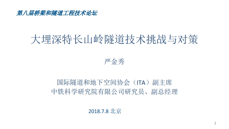 严金秀简介:中铁科学研究院有限公司副总经理、研究员,国际隧道和地下空间协会(ITA)副主席,中国土木工程学会隧道及地下工程分会副理事长。长期从事隧道工程技术研究,对国际隧道工程技术发展、长大和复杂隧道修建技术、海底隧道修建技术、隧道风险管理、单层衬砌、防排水技术等方面有较深的研究。获中国铁道学会、中国公路学会、四川省、青岛市等科学技术奖多项,为享受国务院政府特殊津贴专家。发表论文20余篇;在欧洲、北美、南美、东南亚、中东等地区国际会议上发表20多个主题报告;为ITA培训专家并承担了大量培训授课;曾主编500多万字的隧道专业论文集及期刊。