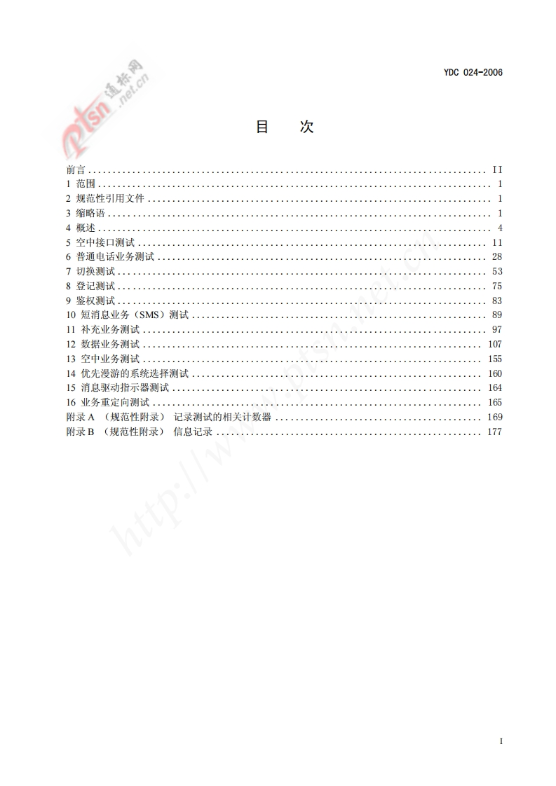 通标网t.cn通信标准参考性技术文件YDC024-2006代替YDC024-2003800 MHz CDMA1X数字蜂窝移动通信网设备测试方法:移动台第2部分协议一致性测试Test Specification of Mobile Station(including Non UIM Mobile Station)for800MHz CDMA 1X Digital Cellular Mobile Telecommunication Network:Part 2:Protocol Conformance Test Part2006-09-19印发中华人民共和国信息产业部科学技术司发布