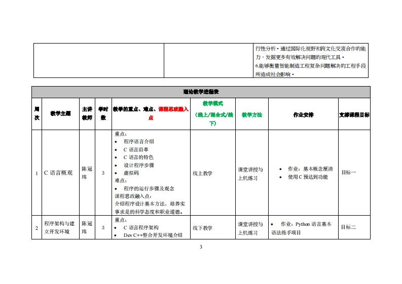 《(C语言程序设计》教学大纲课避名称,C语言程序设计课和类别(必修选修):必修课程英文名称:C Language Programming总学时周学时学分,48W3/3其中实脸实液学时,0/24先修课塞:后续课程支燥发课时间:授课地点:课对津:2022暂他制造1症、2班开裸学洗:粤合产业科妆学陕任课柳姓名淋:陈迅沸/进柳答展时间、地点与方式:1分配习愿演练,采用集中讲解方式课狸考核方式开卷()闭卷(√)课程论文()其它(/)使用村,C和序设计(第五版)妆学考查料:1.《C程序设计》清华大学出版社潭洁漫偏着:(第5版)1SBN:97873024814472.C程序设计活言机械工业出辰社布来厚-克拟汉轴请:(第2版)1SBN:9787111617945线上:1.C话言微接https:ww.runoob.com/programming吹-tutorial..htal2.C语言中文网bttp:c.bianc山eg.ne/课庭信介:培养C活吉盖本州程榄力,并且具备环境开发革铁及执行能力。C话言主要目的为开发NK作业莱院以普代部分使用组合话言所情写的工作,故常应用至单片机开发及铺程,其被心能力包括定义问愿、问加分析、设计演算法及精写程序能力,1