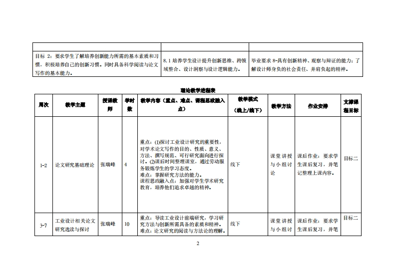 《书报讨论与写作》教学大纲课程名称:书报讨论与写作课程类别(必信/选修):必修课程英文名称:Seinar and Triting总苹时/周苹时/举分:32/2/2其中实验/实碳举时:0先修课程后续课程支排授课时间:2-17周是期四1-2节提课地点:实218发课对◆2021复工业设计开课学晓:事台产业科技学院任课收师姓名/路:张峰/讲师答疑时间、地点与方式:厕一至周五,实靴费213:讨论课程考核方式:开卷()闭卷《√)课程论文()其它《)使用教材:科学研究方法与学术论文写作(第二55版),周新车,科学出版社课程情介:书报讨论与可作课程曾在提高学生的网读、分析、科研和论文可作能力。学生通过网读工业设计相关书情和文献深入了解不同主■和观点,培养湿舞息维和创新意识。课是侧量于介阳工业设计顺球的论文可和研究方法,渐助学生掌量创新设计理念、技术和方法,提开机决复来设计付愿的能力。课应微学目标及对毕业要求指针点的支排:课程敏学目标文排毕业要求指标点单业要求目标1:要求学生掌握创新和创惭思维的核心概念,了解7.2将用户需求进行转化与创新,提出毕业要求7-发据、分析与解决使用者的深层需求,创新思维的内在含义和特点。同时具备发觉问愿,并且将高质量的解决方案。并透过设计解决需求的问愿。之转化为科学研究的能力。