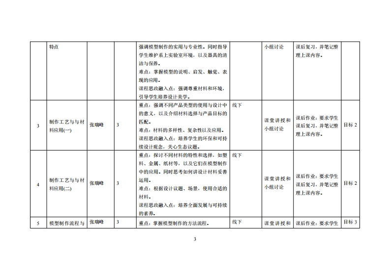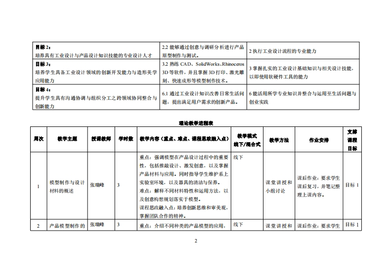 《产品模型制作实务》教学大纲裸程名称:产品模型制作实务课程类别(必修选修)事必修课程英文名称:Production Practice of Prod山ct Model总学时周学时/学分,48/3/3其中实险实戒学时:32先售课是:产品设计与模型制作后续课程支撑:专题制作2授课时间:周一13节(1-16周)授课地点:实218提课对津:2023工业设计1班(粤台)开课学洗:粤台产业科技学院任课数即姓名职淋:张瑞峰/讲师容鞭时间、地点与方式:周一至周五,实验楼307,讨论课程考核方式:开卷()闭卷()课程论文()其它()使用妆村,设计材料与工艺张种V机械工业出版社1SBN9787刀111742128妆学◆考资料:课程简介:「产品模型制作实务」课程的目标是向工业设计专业学生传授产品模型制作技能,酒盖了从模型制作的意义、材料选用、创作方法,到最终创作一个可持续性产品模型的全过程。在课程中,通过理论与实鹿相结合的方式,培养学生的创意思维、找术能力以及可持续设计理老,半生将不仅深入理解横型制作的艺术与科苹,还将获得在设计领媒实际操作的能力,从而成为具名创新思婕和实度能力的工业设计专业人才。课程妆学目标及对毕业要求指标点的支撑:裸程妆学目标支撑单业要求指标点毕业要求目标1:11掌握工业设计的基础知识,能清晰1熟练运用设计基础知识,智能制造知识与美学知培养具有智能制造与产品设计相结合的智能化设计人才地将设计想法呈现。识的能力
