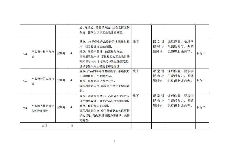 《产品设计》教学大纲课容名称:产品设计谋容类别(必修选修):进修课程英文名称:Product Design总学时厕学时学分:32/22其中实验实瘦学时:16先恤课后续课程文排年授课时间:周一56节(217周提课地点:实305授课对律:2021计算机科学与技术专业多擦体设计(鼻台)开课学院:粤台产业科技学佛任课就闻姓名职淋:张赠峰/讲师答凝时间、地点与方式:实213/上班时间/讨论课程考核方式:开卷()闭卷()课程论文()其蛇〔√)使用微材《产品设计额论》,吴清,音春前,武汉大学出版社,2012年02月1SBN:787307094017课程青介:本课程自在培养学生为高前者设计产品的能力。随增人口老禁化道势的加测,对高龄者生括品质和需求的关注日益增加,因此本课座普服于御决老年人弹体的实标间惠,培养苹生对于老年人需求的洲来和创新设计能力。课容内客酒遭老年人生活的方方面西,从日常生活用品到医疗输助具,从家层设计到交道工具等,举生将華习如何通过工业设计的手段,为老年人提供加侵境、适和安全的产品。课座通过案例分析、设计项目等方式引导举生深入了解者年人的需求和生活方式,从面提出创新的设计解决方案,通过本课容的学习,苹生将不仅拿量工业设计的理论知识和实瘦放能,还将培养创新思维和人文关怀,成为能够为杜会做出贡献的优工业设计师。