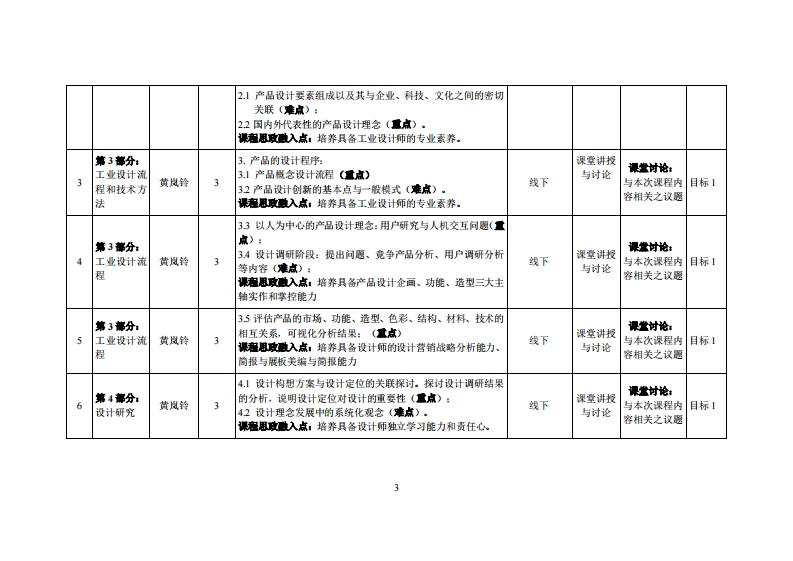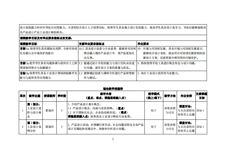《产品设计与棋型制作》教学大纲课程名称:产品设计与模型制作课程类别(必修进修):必修课座英文名称:Product Design and Model Marking总学时周举时学分,48/33其中实验实驶学时:24先修课是:创新思维、工程制图后续课程支撑产品文化与市场调研授课时间:周一5-7节)-16周授课地点:实218授课对律:2023级工业设计开课学桃:粤台产业科技学院工业设计系任课教师姓名/职称:黄岚铃/副教授答疑时间、地点与方式时间(课堂、课外)、地点(实验楼405)、QQ》、方式(面谈、QQ》课程核方式:开卷()闭卷()课程论文()其它()使用放数村《产品设计》,刘永翔编,机械工业出版社,2023年,SBN:9787111624684教学考资料:课庭情介:本课程为工业设计系二年级下学期的核心课程,是设计理论和设计实践的综合体。本课程内容目的是以产品创新设计为重点,培养学生具备设计思考、分析问题、洞察未来生活趋势、设计调研知识和设计实践能力,落实工业设计程驴,并将其他课程所学的知识和技能综合应用于具体设计项目。设计项目侧重于解缺问愿、产品创意、设计价值、功能、美学、创新技术应用等关系,从设计专业性提出解决方案,将构想和创意具体化,强化产品造型设计表达能力、解决问愿和发现设计价值的能力。通过对现在式的生活产品发展趋势和对未来生活趋势的探讨,以国际关注的生活问愿为案例,从问题发现、市场调查、产品分析、设计思考、创意概念、设计模型等实践创作,启发学生对设计主题的数据搜集与分析能力、思考力、造型独创性、