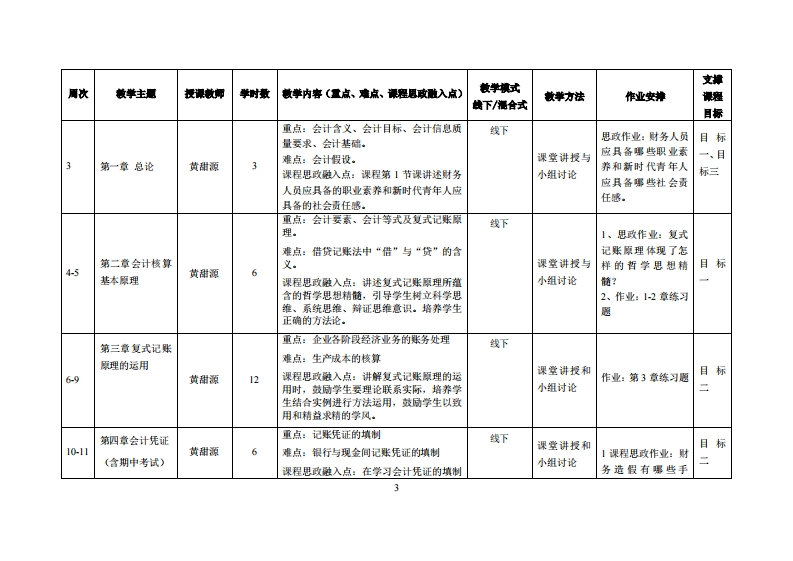 《会计学原理》教学大纲课程名称:会计苹爪湿谋程类别(必修选修),必修课程漢文名称:principles of accounting总学时周学时学分,483/3其中实验实戒学时:先体课程:无后续课程支推财务管建提课时间:里期三(911节)(第318厕)提课地点:实验楼406授课对津:25鞭金数1、2班开课学院:粤合产业科技苹陕任课妆师姓名淋:黄谢潭刚敏战答鞭时间、地点与方式:1、意立撒指裸容群,实捕战上答展:2、每次上课的课前、课间和课后进行答振:3、数师办公直答乘。课程考读方式:开港()闭港(W)课程论文()其它()使用妆村,会计学原复(第三版黄海满彭液精着)立信会计出版社教学中考资料:1、会计学具速(第四版陈跳芳情普)东北时经大学出版壮2、基础金计(第7版刘英明米簧情著)中国人民大学出版壮课程简介:《会计学肌理》是会计、财务管理、工商管理等径济管理类专业的核心基随课程,也是构建专业知识体系的入门课,自在为学生誉建会计学的基感以知居渠。本课程内容四绕会计学核心是舞限开,盖会计的基本禄达(如资产、负债、所有者权益等会计要素)、善本理(会计恒傅式、权责发生制等)与莲本方法(复式记账法、会计先证填制、账得登记、财务报表端制博),同时结合企业常见经济业务案例,帮助苹生速解会计核算的光整流座。通过本课程的苹习,苹生不仅能津量会计基驰喜论与实操放能,具名卿滨和运用会计情惠的初步能力,还能建立严道的会计思维与取业家养,为后续学习财务管湿、财务报表分析等专业课座,以及未来从事经济情理相关工作莫定坚实基随。课程妆学目标及对毕业要求州标点的支排:
