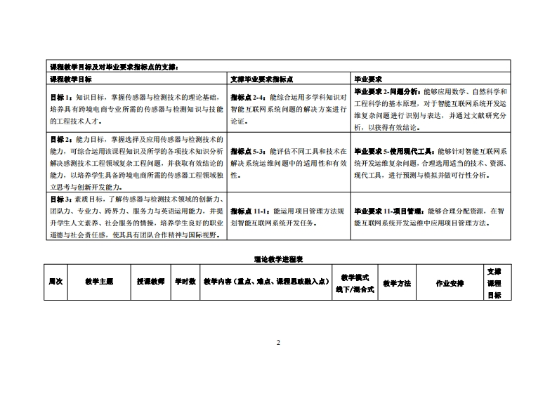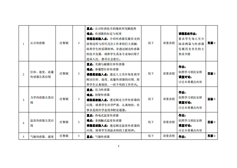 《传威器与检测技术》教学大纲课程名称:传感器与检测技术课程类别(必修迹修),选修裸程英文名称:Sensors and De起ction Technology总学时/周学时/学分:48/33其中实验实败学时:24先修课程:电工与电子技术后续课程支排:计算机视觉提课时间:1-16周星期五5-7节授课地点:实314、机电楼201授裸对速2023计科电商1,2班开课学佛:粤台产业科技学院任裸放师挺名/职麻:庄智领/副教授答聚时间、地点与方式:1每次课的课前、课间和课后,采用一对一的问答方式:2每次习题课,采用集中讲解方式,课程考核方式:开卷()闭卷《)课程论文()其它(√)非试卷类报告使用教材:《传感器与检测技术应用》,陈经文、孙东平、王盼盼主编,人民郎电出版社,ISBN:9787115569196.收学◆考资料:《传感器应用实例》,宋涛、汤利东主编,机械工业出版社,SBN:9787111568797.《Arduino技术及应用》,李明亮编著,清华大学出版社,1SBN:9787302563327.课程简介:本课程是跨境电商专业的专业任选课,内容以传感器为主,讲述其基本原理和应用技术,系统性介绍传感器的基本知识、传感器组成与分类、传感器的材料及特性、传感器标定与校准、传感检测技术的作用和发展,重点讲解位移、力学、温度、气敏、湿度、光电、视觉等方面的传感器的工作原理与应用方法。本课程利用项目制作传感器测试装置,搭配Arduino编程对单片机功能进行调试及实物制作,使本课程兼具理论性和实毁性。
