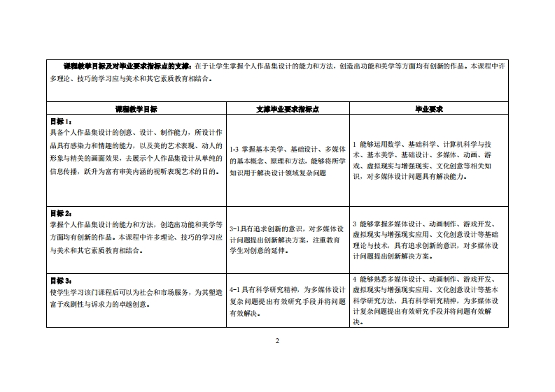 《作品集设计》教学大纲课避名称:作品集设计课忍类别(必修选修)选修课程英文名称:Collection design总学时周学时学分,2其中实险实戒学时,16先修课程:数字图像处理与数字绘图后续课程支撑毕业设计授课时间:9-16周,周三下午5-8节授课地点:实验楼114机房课对律:21级多媒体1班开裸学陕:粤台产业科技学院任课放甲姓名琳:命敏副教授答展时间、地点与方式:实验楼114是考恢方式:开卷()闭卷()课程论文()其它():作品设计使用微村潘建羽,版式设计从入门到精通M,人民邮电出版社,2021.08妆学事考资料:书籍设计基础,日敬人,高等教育出版社,2012年。课程物介:《作品集设计》是为多媒体等设计类专业学生开设的主要专业课程,是多媒体专业等设计类专业最重要专业知识内容,在教学培养计划中有重要地位。通过本课程学习,使学生初步了解从事个人作品集设计不仅是设计中重要的组成部分,也是宣传自己的重要形式和手段:个人作品集设计己被越来越多的设计师重视和运用,并在成长的过程中是示出其强大的生命力和广阔的发展前景的重要性。