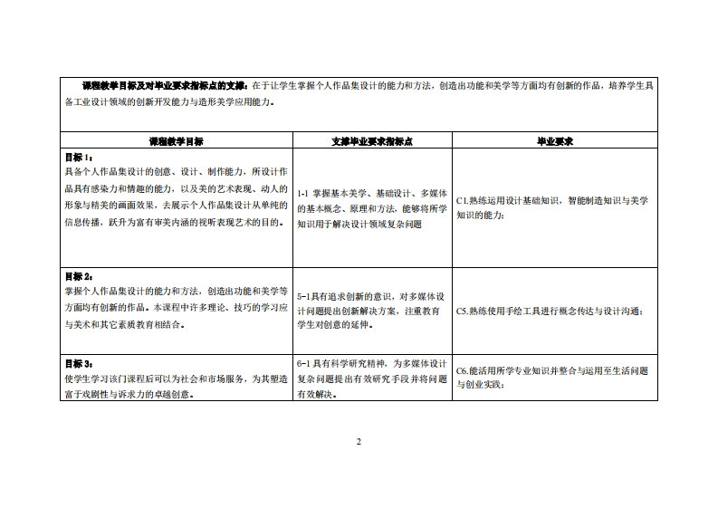 《作品集设计》教学大纲课避名称:作品集设计课忍类别(必修选修)选修课程文名称:Collection desig总学时周学时学分,322/2其中实险实戒学时,16先继课是:平面设计、创新思维后续课程支排毕业设计漫课时间:96周,周二下午5-8节授课地点:实验楼218课对律:21级工业设计1班开裸学洗:粤台产业科技学院任课放甲姓名琳:命敏副教授答展时间、地点与方式:实验楼114是考恢方式:开卷()闭卷()课程论文()其它():作品设计使用微村潘建羽,版式设计从入门到精通M,人民邮电出版社,2021.08妆学事考资料:书籍设计基础,日敬人,高等教育出版社,2012年。课程物介:《作品集设计》是为工业设计等设计类专业学生开设的主要专业课程,是工业设计专业等设计类专业最重要专业知识内容,在教学培养计划中有重要地位。通过本课程学习,使学生初步了解从事个人作品集设计不仅是设计中重要的组成部份,也是宣传自己的重要形式和手段:个人作品集设计已被越来越多的设计师重视和运用,并在成长的过程中显示出其强大的生命力和广闲的发展前景的重要性。1