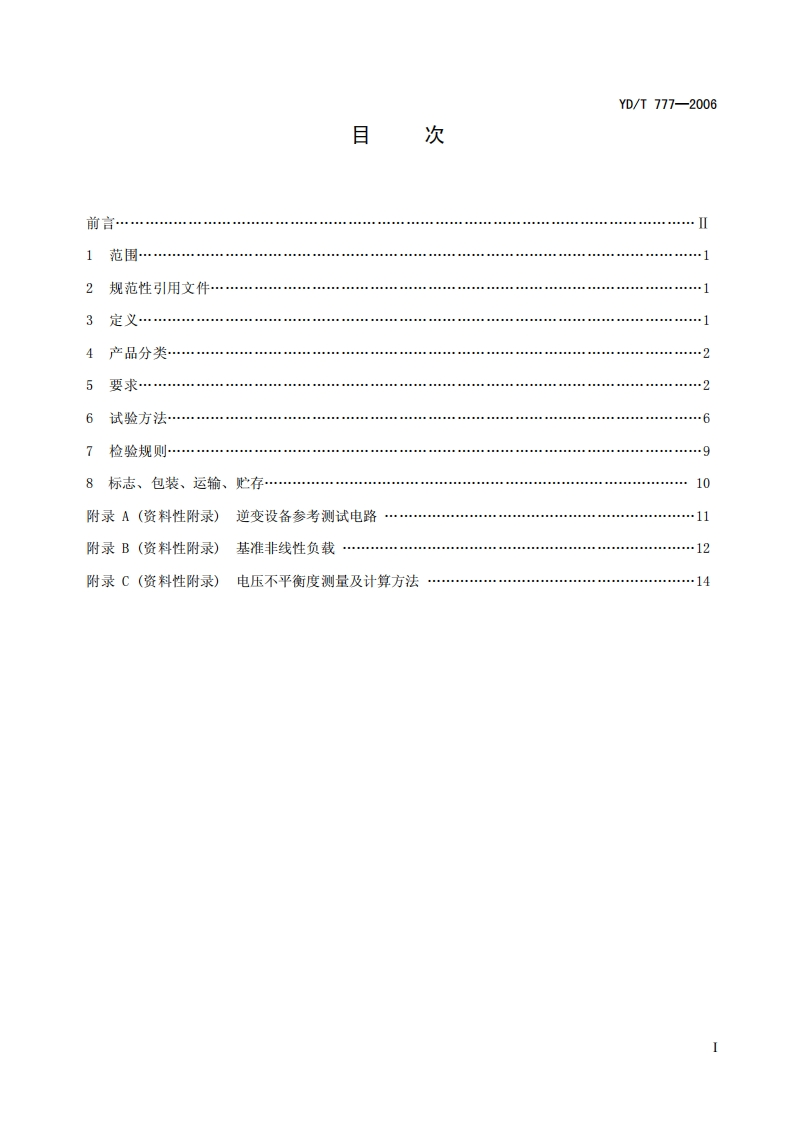 YD-T777-2006348072@abc4个月前发布关注私信0.25MB19页025YD-T777-2006此内容为付费资源,请付费后查看¥13¥23黄金会员免费钻石会员免费立即购买您当前未登录!建议登陆后购买,可保存购买订单付费资源 第1页 / 共19页 第2页 / 共19页 试读已结束,还剩17页,您可下载完整版后进行离线阅读 THE END标准规范 文本预览 M41YD中华人民共和国通信行业标准YD/T777-2006代替YD/T777一1999通信用逆变设备Inversion equipment for Telecommunications2006-05-31发布2006-10-1实施中华人民共和国信息产业部发布 查看更多 收起部分 喜欢就支持一下吧收藏
