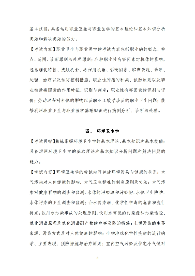 卫生综合(科目代码353)考试大纲I、考查范围卫生综合的考察范围包括流行病学(约20%):卫生统计学(约20%):职业卫生与职业医学(约20%)、环境卫生学(约20%)、营养与食品卫生学(约20%)。II、考查目的和要求旨在考察考生对预防医学基础知识、基本理论和基本技能的掌握情况,以及利用所学知识解决实际问题的能力。要求考生能够系统掌握公共卫生与预防医学的基础知识、基本理论和基本技能,并能够利用所学知识解决实际问题。III、考查形式及试卷结构1.考试方式:闭卷,笔试2.考试时间:180分钟3.试卷分值:300分4.题型结构:名词解释75分(25%)单选题100分(34%)简答题75分(25%)论述题50分(16%)IV、考查内容一、流行病学【考试目标】熟练掌握流行病学的基本理论、基本知识和基本技能;y