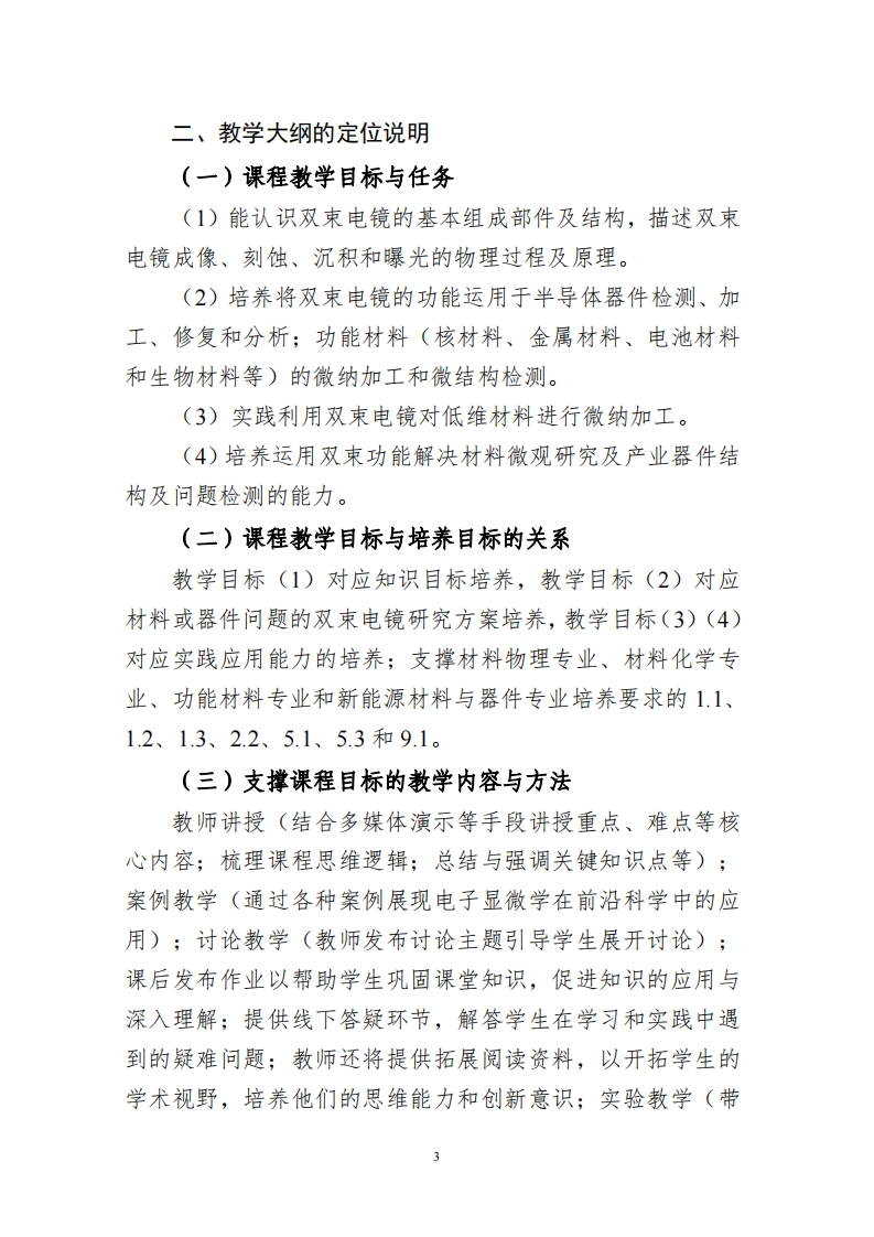 《双束电镜原理及应用》课程教学大纲一、课程概况课程名称双束电镜原理及应用课程号1412070课程英文名称Principle and application of dual学时/学分36/2beam electron microscope课程性质选修适用专业材料物理、功能材料课程负责人邓霞教学团队彭勇、张军伟、蒙萱、胡阳、关超帅选用散材及教材:《聚焦离子束:应用与实践》邓昱、魏大庆、王英、陈振著参考书目参考书目:《Focused Ion Beam Systems:Basics and Applications》Nan Yao课程简介:双束电镜原理及应用是材料科学的专业选修课程。双束电镜主要由扫描电子束系统和离子束系统组成。课程着重阐述扫描电子束系统/离子束的结构、电子束/离子束与物质的相互作用和成像原理:离子束诱导沉积、溅射刻蚀过程及重要控制参数。从实际工作应用角度出发,详细介绍双束电镜在产研半导体器件、核功能材料、金属材料及电子束敏感材料中的应用,其包含微观结构成像、化学成分分析、刻蚀加工、材料沉积、电子束曝光、三维结构解析、电路检测和TEM样品制备等。最后结合双束电镜TEM样品制备实验操作,使学生形象地理解双束电镜的工作过程,具象化其应用。课程目标(Course Objectives,CO)熟悉双束电镜的工作原理知识及应用领域知识目标(C01)掌握双束电镜在半导体器件、核功能材料、金属材料和电子束敏感材料中的应用利用双束电镜技术对半导体器件、金属材料和电子束敏感材料进行能力目标(C02)微观检测和分析实践双束电镜的刻蚀、沉积及纳米加工应用素质、情感价值观目标(CO3)☑PM1讲授法教学32学时89%口PM2研讨式学习学时%散学方式(Pedagogical口PM3案例教学学时%口PM4翻转课堂学时%Methods.PM)口PM5混合式教学学时%回M6体验式学习4学时11%考考核方式☑EM1课程作业20%oEM2单元测试%OEMB课堂辩论oo(EvaluationMethods,EM)必选oEM4期中考试%oEM5期末考试%oEM6撰写论文/实验报告%