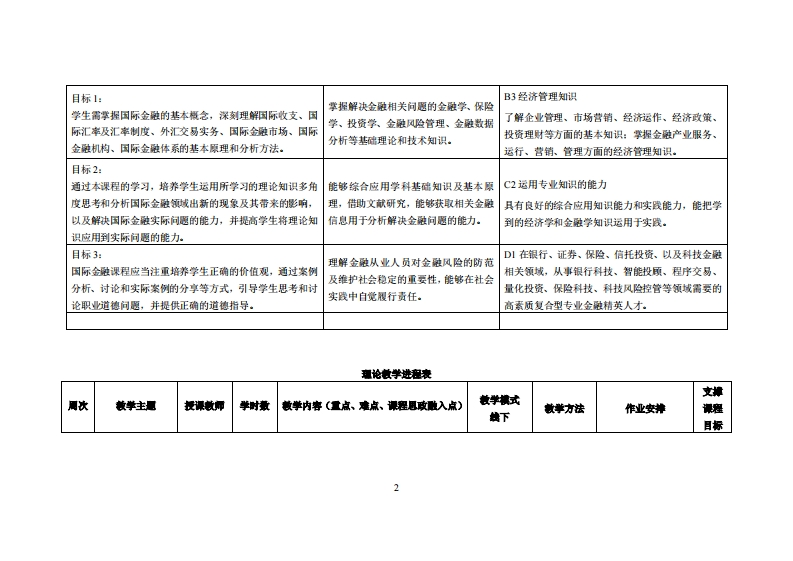 《国际金融》教学大纲裸应名称国际金融课和类别(必修选修)·必修课程英文名称:Intemational Finance总学时周学时学分,483/3其中实检实减学时,0先继课程:经济学、金融学后续课程支撑国际金融案例分析漫课时间:1-16周周一上午1、2、3节授课地点:6302课对津:2022经济与金融2班(粤台金融管理)开裸学瑰:粤台产业科技学院任课救姓名称:唐志刚/教报容鞭时间、地点与方式线上课是考恢方式:开卷()闭卷()课程论文(√)其它(实铁报告使用微村姜波克国际金融新编(第6版)M,复且大学出版社,2021年6月.被学◆考资料:王晓光国际金融(第六版)(微课版)M,清华大学出版社,2023年3月.裸避简介:《国际金融》是金融学类专业的一门专业必修课程,主要论述了国际金融学的基本概念和基本理论,内容包括:国际收支、国际汇幸及汇幸制度、外汇交易实务、国际金融市场、国际金融机构、国际金融体系的基本概念和原理。通过本课程的学习,培养学生掌握观察、分析和解决国际金融问愿的正确方法,学习国际金融业务、外汇交易、国际融资和外汇风险防范的基本知识和技能,提高国际金融专业方面的知识素养,帮助学生树立正确的国际金融意识。国际金融是一门理论性强,宏观、微观并重,并需要一定计算基础的综合性课程。课程敏学目标及对华业要求指标点的支排:课程妆学目标支排华业要求州标点单业要求