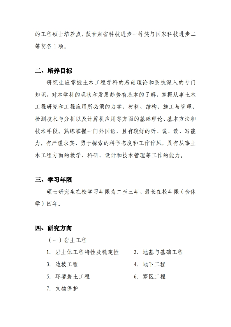 土木工程(一级学科)攻读学术型硕士研究生培养方案代a码:081400(Civil Engineering)一、学科概况土木工程是建造各类工程设施的科学技术的统称。它既指所应用的材料、设备和所进行的勘测、设计、施工、保养维修等技术活动;也指工程建设的对象,即建造在地上或地下、陆上或水中,直接或间接为人类生活、生产、军事、科研服务的各种工程设施,例如房屋、道路、铁路、运输管道、隧道、桥梁、运河、堤坝、港口、电站、飞机场、海洋平台、给水和排水以及防护工程等。建造工程设施的物质基础是土地、建筑材料、建筑设备和施工机具。借助于这些物质条件,经济而便捷地建成既能满足人们使用要求和审美要求,又能安全承受各种荷载的工程设施,是土木工程学科的出发点和归宿。兰州大学土木工程专业成立于2001年。2010年土木工程学科获得一级学科硕士学位授权点,目前含有三个专业,分别是岩土工程、防灾减灾工程及防护工程和结构工程。有一支结构合理、相对稳定,教学质量优秀,科研成果丰硕的教师队伍和科研群体。现有中国工程院院士1人,以及一批具有工程实践经历的专业注册师,拥有土木工程一级学科硕士学位授予权点、土木工程领域