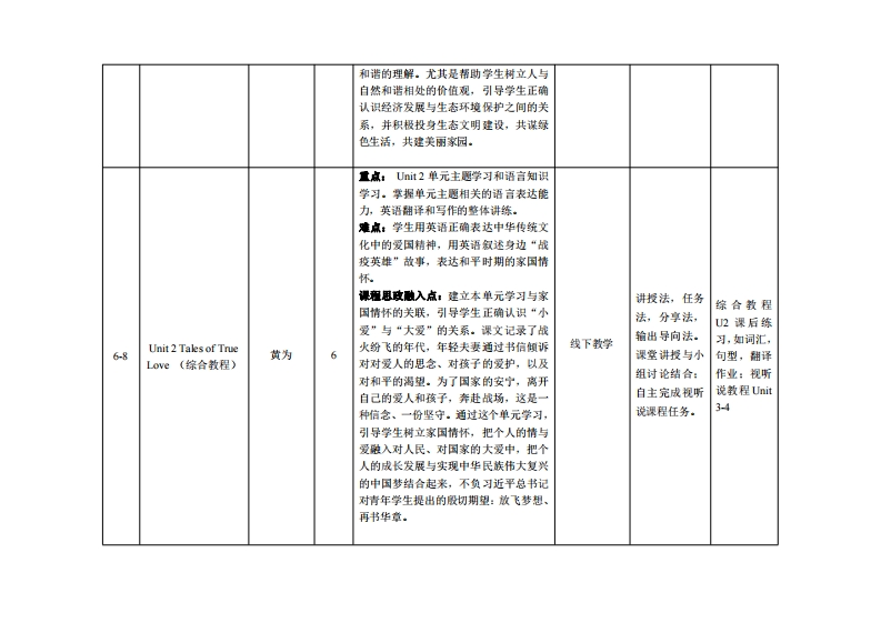 《基础英语1》教学大纲课程名称:基础英语1课程类别(必修造修):必修课程英文名称:Basic English1总学时网学时/学分:32/22其中实验实我半时:先体课程:盖随英话1授课时间:318周周五1-2、3-4节授裸地点:实315授课对意:事台学院22级基础英语C1、C2班开课学陕:粤台产业科技学院任裸敏师姓名/职称:黄为饼师答疑时间、地点与方式:通过课堂面对面答疑,结合通过“优学院”等网络教学平台、微信(QQ》、电子邮件、电话等方式答疑,时间和地点依实际情况灵活处理。课程考核方式:开卷()闭卷()课程论文()其它()使用做材:全新版大学进阶英语综合教程2(学生用书),范焊,上海外语教育出版社,2017年4月:全新版大学进阶英语视听说教程2,朱晓碳等,上海外语教育出版社,2017年4月.敏学◆考资料:《TED演讲》、《英语写作技巧》、《英汉翻译教程》、《英语四六级听力技巧》课程简介:《基础英语》课程是面向非英语专业学生的一门必修课。该课程以《大学英语教学指南》(2020版)为指导,以英语语言知识与应用技能、跨文化交际和学习策略为主要内容,是各个专业的专业英语课程的基础,也是培养学生人文素质的一门必修课程。结合线上线下混合式教学模式,本课程采用基于活动的英语教学模式,坚持“能力本位、任务驱动、行动导向、教学做一体化”的原则,做到“学中做,做中学”,以达到“学以致用”、“学以管用”的目的。在教学中,倡导任务导向、目标导向教学法,积极鼓局学生参与语言活动,进行愉快学习。本课程从听、说、读、写、译各方面帮助学生提高英语综合应用能力,拓展学生的思维能力,提高学生的跨文化交际能力,独立自主以及合作学习的能力,提升文化修养,培养职业精神与职业技能。