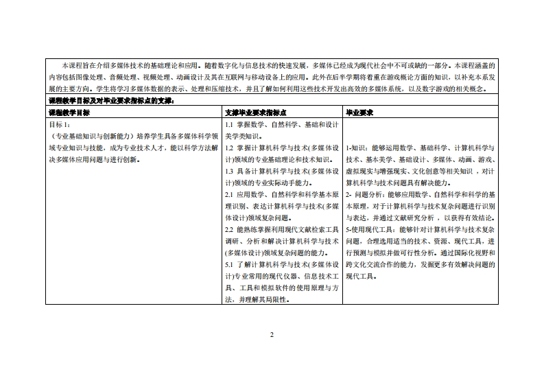 《多媒体概论》教学大纲课避名称,多媒体概论课忍类别(必修选修)必修课程英文名称:Introduction to Multimedia总学时周学时学分,48w3/3其中实险实液学时,8先修课塞:无后续课程支嫌多媒体设计与制作、游戏开发实务装课时间:116周周三911节授课地点:实616课对律:2023级多媒体系1班开裸学洗粤台产业科技学院多媒体设计系。任课救即姓名:盛介中副教授答票时间、地点与方式:实验楼3071每次课的课前、课间和课后,采用一对一的问答方式:2每次习愿课,采用集中讲解方式课庭考核方式:开卷()闭卷(√)课程论文()其它()使用妆村:1.多媒体应用技术(第2版),季怡、龚声蓉、刘纯平、王林,人民邮电出版社。2.数字游戏设计,黄石,清华大学出版社。妆学考资料:1.《多媒体技术与应用》清华大学出版社安继芳,侯爽2.《智能多媒体理论与实战》清华大学出版社陈锋,陈平平,郭思特,郑明魁,吴丽君课整物介