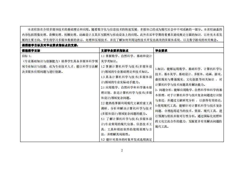 《多媒体概论》教学大纲裸程名称:多媒体概论课程类别(必修选修)事必修课程英文名称:Introduction to Multimedia总学时周学时/学分,48/3/3其中实险实戒学时:8先售程:无后续课程支撑:多媒体设计与制作、游戏开发实务授课时间:1至16周里期四9-11节授课地点:605机房授课对:2024级多媒体系1班开课学洗:粤台产业科技学院多媒体设计系。任课敏即姓名职淋:盛介中/副教授容疑时间、地点与方式:实验楼3071每次课的课前、课间和课后,采用一对一的问答方式:2每次习题课,采用集中讲解方式课程考核方式:开卷()闭卷(√)课程论文()其它()使用微材:1.多媒体应用技术(第2版),季怡、龚声蓉、刘纯平、王林,人民邮电出版社.2.数字游戏设计,黄石,清华大学出版社收学事考资料:1.《多媒体技术与应用》清华大学出版社安继芳,侯爽2.《智能多媒体理论与实战》清华大学出版社陈锋,陈平平,郭恩特,郑明魁,吴丽君课程筒介: