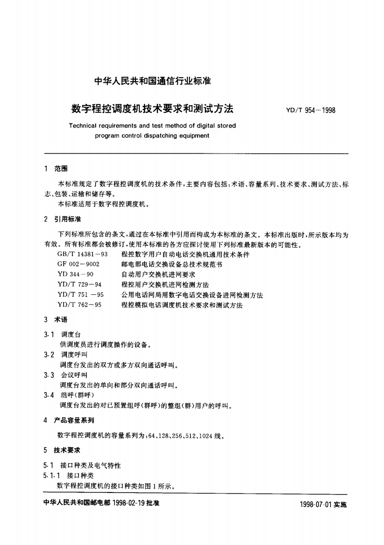 YD-T954-1998348072@abc2个月前发布关注私信0.76MB29页03110YD-T954-1998此内容为付费资源,请付费后查看¥13¥23黄金会员免费钻石会员免费立即购买您当前未登录!建议登陆后购买,可保存购买订单付费资源 第1页 / 共29页 第2页 / 共29页 试读已结束,还剩27页,您可下载完整版后进行离线阅读 © 版权声明文章版权归作者所有,未经允许请勿转载。THE END标准规范 文本预览 YD/T954-1998前言数字程控调度机是我国大中型企业和专用网中广泛使用的一种以内部通信为主要功能的通信设备。为了加强调度机的产品管理,特制定本标准。本标准可以作为调度通信行业设计、生产数字程控调度机的依据。本标准由邮电部电信科学研究规划院提出并归口。本标准由邮电部第一研究所起草。本标准主要起草人:潘绍华袁佩珍马君李睿 查看更多 收起部分 喜欢就支持一下吧点赞10 分享QQ空间微博QQ好友海报分享复制链接收藏