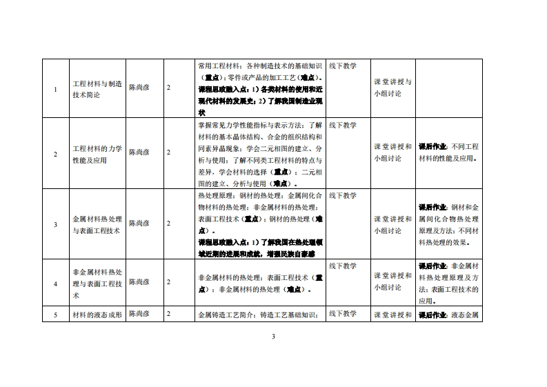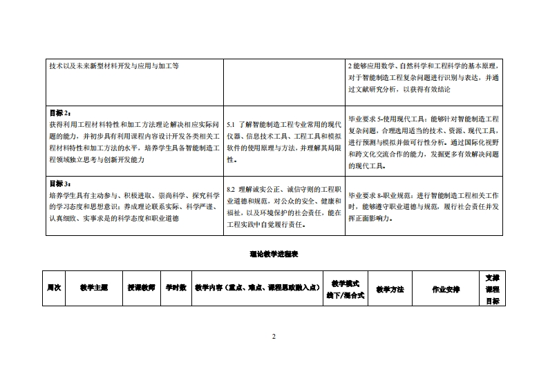 《工程材料与成型技术》教学大纲裸应名称工程材料与成型技术课和类别(必修选修)多选修课程英文名称:Engineering Materials and Molding Technology总学时周学时学分,322/2其中实检实减学时,08先修课程:工程力学、大学物理、机械制图后续课瘦支撑数控加工与编程、机械制造技术基础授课时间:周五3-4节,第1周-16周授课地点:莞城校区机电楼312及402实验室提课对律:23级智能制造2班开裸学瑰:粤台产业科技学院任课救师姓名淋:陈尚副教授鞭时间、地点与方式:周四下午2:305:30莞城校区实验楼412采用集中讲解方式课程考方式:开卷()闭卷(√)课程论文()其它()使用微村,《工程材料与机械制造基础》,孙康宁、张景德,高等教育出版社,2019年10月,第3版妆学◆考度料:《工程材料成型基础》,高红霞,机械工业出版社,2021年9月课避情介:工程材料与成型技术课程是一门用以培养学生在工程检验与设计中有关加工方法、材料方面设计与选择能力的专业技术课,本课程主要研究机械制造中如何选用材料和针对不同材料的加工方法的能力问题。通过工程材料与成型技术的学习,能够对材料的性质·加工方法问题具有明确的基本概念,掌握必要的基础知识,具备比较熟练工程材料选用并加工能力,一定的分析能力和初步的实践能力。课程妆学目标及对毕业要求州标点的支排:课程妆学目标支撑毕业要求指标点业要求目标1:毕业要求1工程知识:能够运用数学、基础科学和13具备智能制造工程领城的专业实际能够深入了解工程材料特性和加工方法的基本任务、各项智能制造工程专业相关知识,对智能制造工程问题动手能力.理论和发展趋势,掌握工程材料的制备、表征、性能评价具有解决能力。