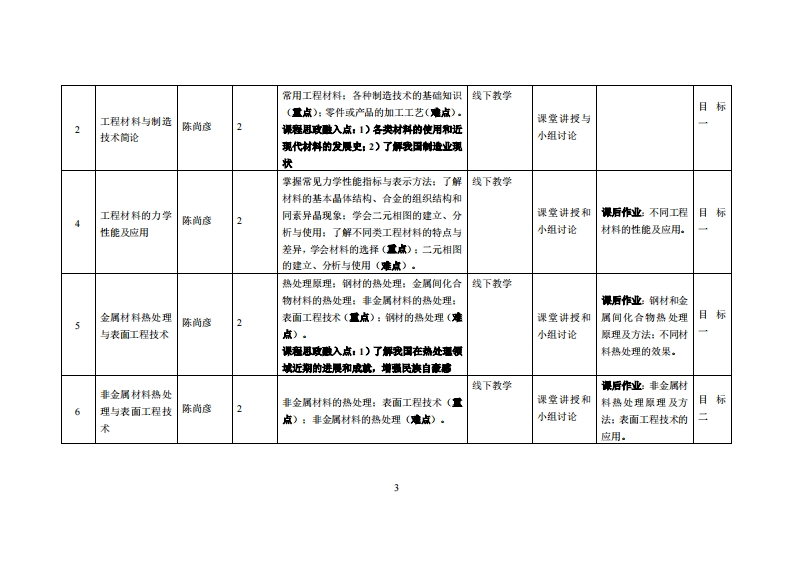《工程材料与成型技术》教学大纲裸名称,工程材料与成型技术课和类别(必修选修):选修课程英文名称:Engineering Materials and Molding Technology总学时周学时学分,322/2其中实检实液学时,08先修课塞:工程力学、大学物理、机械制图后续课程支撑数控加工与编程、机械制造技术基础授课时间:1-16周星期二5-6节授课地点:莞城校区实验楼315课对律:22级智能制造1班及2班开裸学陕:粤台产业科技学院任课放甲姓名淋:陈尚连/副教授答展时间、地点与方式:周四下午2:305:30莞城校区实验楼412采用集中讲解方式课是考妆方式:开卷()闭卷()课程论文()其它()使用微村,《工程材料与机械制造基础》,孙康宁、张景德,高等教育出版社,2019年10月,第3版妆学事考资料:《工程材料成型基础》,高红霞,机械工业出版社,2021年9月课避情介:工程材料与成型技术课程是一门用以培养学生在工程检验与设计中有关加工方法、材料方面设计与选择能力的专技术课,本课程主要研究机械制造中如何选用材料和针对不同材料的加工方法的能力问题。通过工程材料与成型技术的学习,能够对材料的性质·加工方法问题具有明确的基本概念,掌握必要的基础知识,具备比较熟练工程材料选用并加工能力,一定的分析能力和初步的实践能力。课程放学目标及对毕业要求指标点的支排:课应妆学日标支撑单业要买求指标点单业要球目标1:毕业要求1工程知识:能够运用数学、基础科学和13具备智能制造工程领域的专业实际智能制造工程专业相关知识,对智能制造工程问题动手能力。具有解块能力。