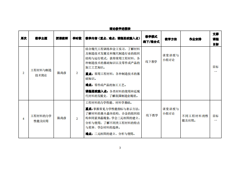 《工程材料与成型技术》教学大纲裸名称,工程材料与成型技术课和类别(必修选修):选修课程英文名称:Engineering Materials and Molding Technology总学时周学时学分,322/2其中实检实液学时,08先修课狸:工程力学、大学物理、机械原理后续课程支推数控加工与编程、机械制造技术基础授课时间:2、418周星期二34节授课地点:莞城校区实验楼313课对律:21级智能制造2班开裸学陕:粤台产业科技学院任课就甲姓名称:陈尚连/副教授答展时间、地点与方式:课程考核方式:开卷()闭卷()课程论文()其它()使用微村,《工程材料与机械制造基础》,孙康宁、张景德,高等教育出版社,2019年10月,第3版妆学事考度料:《工程材料成型基础》,高红霞,机械工业出版社,2021年9月课避情介:工程材料与成型技术课程是一门用以培养学生在工程检验与设计中有关加工方法、材料方面设计与选择能力的专技术课,本课程主要研究机械制造中如何选用材料和针对不同材料的加工方法的佳力问题·通过工程材料与成型技术的学习·能够对村料的性质·加工方法问题只有明确的基本概念,掌程必要的基础知识,具备比较熟练工程材料选用并加工能力,一定的分析能力和初步的实践能力。课程放学目标及对毕业要求指标点的支排:课意妆学日标支津单业要求指标点单业要球目标1(知识目标):能够将工程材料特性和加工方法相毕业要求1-工程知识:能够运用数学、基础能够深入了解工程材料特性和加工方法的基本任务、关知识和数学方法用于智能制造领域科学和智能制造工程专业相关知识,对智能各项理论和发展趋势,掌握工程材料的制备、表征、性能复杂工程问愿各类解决方案,培养具有制造工程问题具有解决能力。