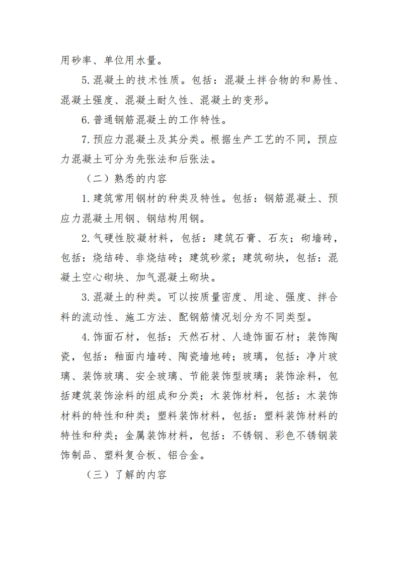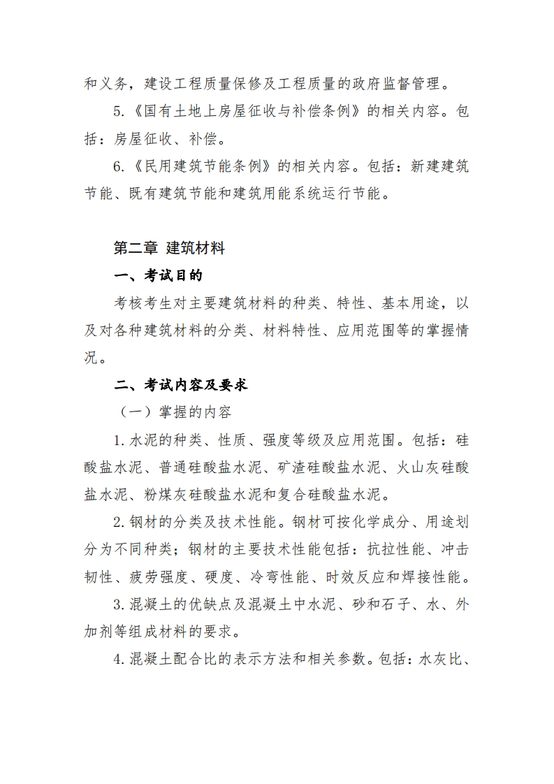 《建筑工程评估》考试大纲第一章建设工程及相关法律法规一、考试目的考核考生对建设工程组成、工程建设程序、建设工程分类及工程建设相关法律法规的掌握情况。二、考试内容及要求(一)掌握的内容1.建设工程组成。包括:建设工程项目组成;房屋建筑工程基本组成。2.工程建设程序。包括:工程项目策划决策和建设实施各个阶段的工作内容。(二)熟悉的内容1.建设工程分类。包括:房屋建筑工程分类;桥梁、隧道、道路及铁路线路工程分类。2.《中华人民共和国建筑法》的相关内容。包括:建筑许可、建筑工程发包与承包、建筑工程监理、建筑安全生产管理、建筑工程质量管理。3.《城市房地产开发经营管理条例》的相关内容。主要包括房地产开发建设与房地产经营两个方面。4.《建设工程质量管理条例》的相关内容。包括:建设单位、勘察设计单位、施工单位、工程监理单位的质量责任
