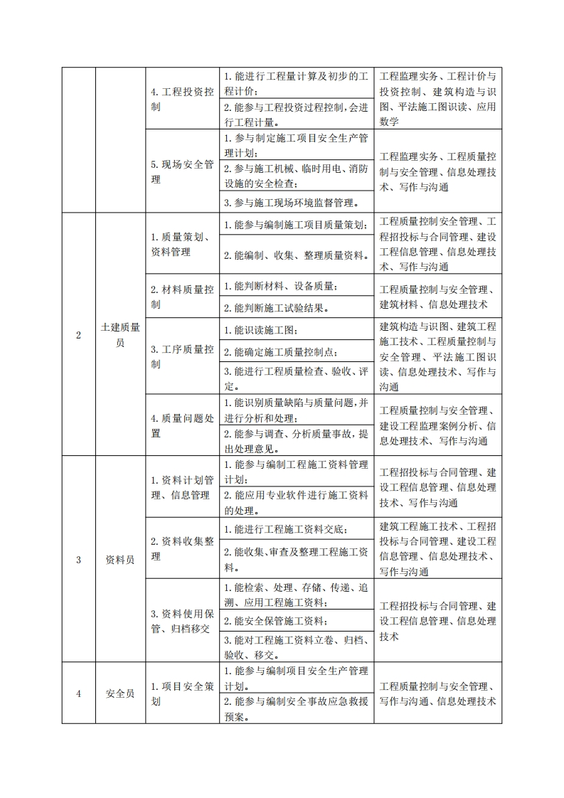 《建设工程监理》专业人才培养方案一、专业名称及代码专业名称:建设工程监理专业专业代码:440504二、入学要求招生对象:高中(中职)毕业生或具有同等学力者。招生类型:文理兼收。三、修业年限三年。四、职业面向(一)职业能力分析1.专业服务面向毕业生主要面向工程监理、项目管理、工程咨询等企事业单位。其主要岗位有:监理员、质量员、资料员、安全员、建筑信息模型技术员等。主要从事建设工程监理、安全生产管理、质量管理、项目管理、全过程咨询等工作。2职业岗位与职业能力分析序号工作岗位典型工作任务职业能力支撑课程1.能参与编制监理规划和监理实全过程工程咨询、工程监理施细则:实务、工程质量控制与安全1.监理实施策管理、工程招投标与合同管划2.能贯彻实施监理计划:理、建设工程信息管理、信3.能依据合同对工程进行控制。息处理技术、写作与沟通1.能参与编制施工项目质量计划:2.能对进场材料、设备进行符合性建筑法规、工程监理实务、工程质量控制与安全管理、监理员2.工程质量控判断,能够评价材料、设备质量:建筑工程施工技术、平法施制3.能进行工程质量检查、验收、评定:工图识读、信息处理技术、4.能识别质量缺陷,并进行分析和写作与沟通处理。1.能参与编制施工进度计划及资建筑工程施工技术、工程监3.工程进度控源需求计划,控制调整计划:理实务、施工组织与进度控制2.能对现场的实际进度进行控制,制、信息处理技术、写作与能够判断工程延期。沟通