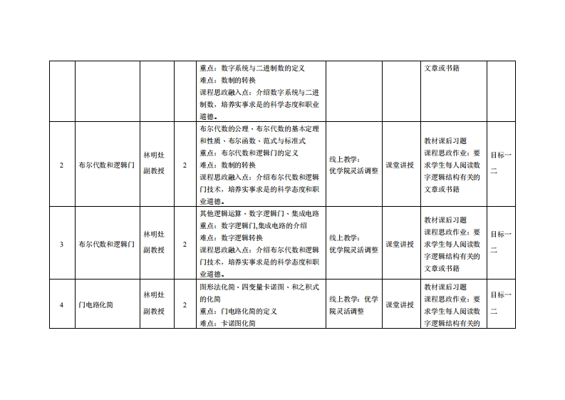 《数字逻辑》教学大纲课应名称:数字逆操课和类别(必修选修):选修课程英文名称:Sy过em Analysis and Design总学时周学时学分,3222其中实检实液学时,16先修课程:计算机导论后续课程支撑计算凯组成与系统结构装课时间:1至16周基期一56节授课地点:光城6311课对津:2023鞭计算机科学与技术诗携电商)电商12薤博台开裸学陕:粤合产业荆妆学陕任课越柳姓名琳:林明灶/测做战答展时间、地点与方式:1每次课的课前、课间和课后,采用一对一的问答方式:2每次习题课,采用集中讲解方式。课狸考核方式:开卷(√)闭卷()课程论文()其它(/)使用妆材:《数字浸得与Veog设计》,是建裤黄成,机城工业出版社。教学考资料:1.各精品资漂共率课网站。裸程信介:1.本课程系统介细数半电略设计,自在教会学生关于数学设计的基本老。数字系续和二进圳撒、布尔代散与是操门、门级最小化,组合理辑、同步时序逻操、寄存得和计收暑、存情害和可精迎操设名、害存害传精极设计、异步时序逻操、数字桌成电略、标准C和FPGA实整、标雅图形清母等。课程铁学目标及对毕业要求指标点的文排课程妆学目标支撑毕业要求指标点单业要求