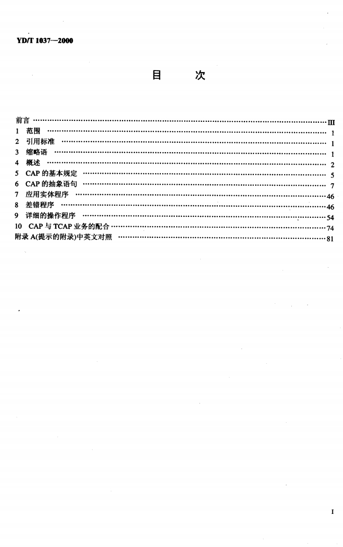 YD中华人民共和国通信行业标准YD/T1037-2000900/1800MHz TDMA数字蜂窝移动通信网CAMEL应用部分(CAP)技术规范900/1800MHz TDMADigital Cellular Mobile Telecommunication NetworkTechnical Specification of CAMEL Application Part(CAP)2000-01-28发布2000-01-28实施中华人民共和国信息产业部发布