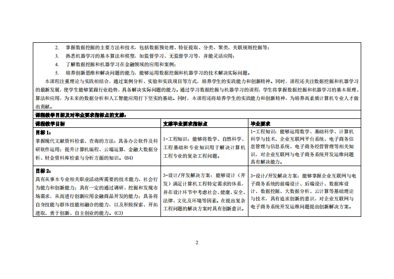 《数据挖掘与机器学习》数学大纲课应名称:数州艺物与机暴学习课和类别(必修选修):必修课程英文名称:Data Mining总学时周学时学分,32/2/2其中实险实戒学时,16先继课是:Pytb0n与大兼据分折后续课程支撑Py山o加网格爽虫实务浸课时间:1-16周基期三1,2节授裸地点:实验楼616课对律:2022纸经数1,2班,23经敢二学位开裸学陕:粤合产业荆妆学陕任课总柳姓名淋:涂保刚越拉答振时间、地点与方式:课堂或裸后,放室或通讯状件,当面或线上答展课程考核方式:开卷()闭卷()课程论文()其它()使用微村:《机器学习算法与应用》,杨云等,清华大学出版社,2020年4月,ISBN:9787302550648妆学考责料:无课程简介:数据挖揭与机器学习是计算机科学和数据分析领域的核心课程,台在培养学生掌握数据挖揭和机器学习的基本原理、算法和应用。本课程将介绍数据挖揭的基本概念、主要方法和技术,以及机器学习的主要算法和模型。通过本课程的学习,学生将能够运用数据挖揭和机器学习的技术解决实际问愿,为未来的数据分析和人工智能应用打下坚实的基础。通过本课程的学习,学生将能够:1,理解数据挖揭和机器学习的基本概念、原理和发展历程: