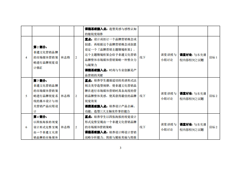 《新媒体营销》教学大纲课避名称:新媒体营销课和类别(必修选修)·选修课程英文名称:New Media Marketing总学时周学时学分,322/2其中实检实液学时,24/0先继课是:数字图像处理与数字绘图、视觉传达设计后续课程支撑交互设计、作品集设计漫课时间:周一2-4节),312周、34节)13-13周授课地点:机电楼303机房提课对津:2022级多媒体设计开裸学陕:粤台产业科技学院多媒体设计系任课就甲姓名稀:林志炜/副教授答时间、地点与方式时间(课堂、课外)、地点(实验楼307、QQ)、方式(面谈、QQ)课程考核方式:开卷()闭卷()课程论文()其它()使用微村,《新媒体营销策划》,王薇、陈冰洁、史文雯,清华大学出版社,2022年6月,1SBN:9787302578475妆学事考责料:课程物介:本课程各阶段相关理论讨论及各项实践作业都是采取小组团队的方式来进行,小组团队共同进行一系列实战,包含:非遗文化营销品牌媒体营销策划设定:针对非遗文化营销品牌进行相关材料搜集及调研工作:拟订非遗文化营销品牌市场媒体营销策略:针对非遗文化营销品牌的市场媒体营销策略进行开题报告:针对非遗文化营销品牌的市场媒体营销策略进行品碑视觉设计草图绘制提案:针对非遗文化营销品牌的市场媒体营销策略进行品牌视觉设计修正:针对非遗文化营销品牌的市场媒体营销策略进行品牌视觉系统的基本设计与相关营销产品应用设计:最后以四张海报的视觉设计形式完整呈现出一个非遗文化营销品牌的市场媒体营销策略。课程放学目标及对华业要求指标点的文排:课程妆学目标支撑毕业要求湘标点单业要求