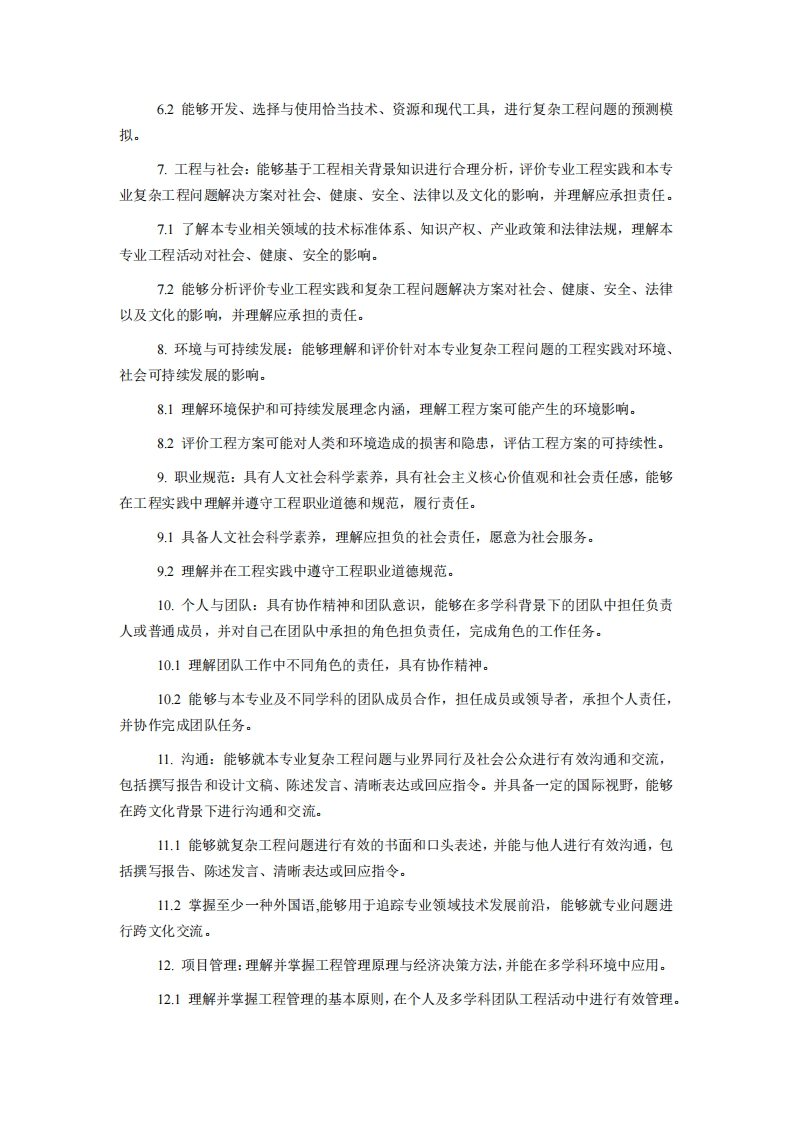 智能装备与系统专业培养方案一、学制及总学分要求1.标准学制:4年:学习年限:3-6年2.总学分要求:167学分二、授予学位工学学士学位三、培养目标面向国家工程前沿领域,尤其人工智能与智能制造领域,培养具有社会主义核心价值观,德智体美劳全面发展,复合型“新工科”人才,使其掌握自主感知、人工智能、数据科学、优化决策及运动控制的最新成果,具备设计、优化、研制智能装备的能力,同时培养从智能系统角度设计和应用复杂系统的能力,服务现代制造业与智能技术高度融合发展的国家战略。具体的能力目标如下:1.掌握智能化理论和方法。在人工智能、数据科学、控制与优化及系统科学方法方面培养基础能力,建立具备经典控制论、信息论、系统论为基础的专业理论体系。2.掌握智能装备研发技术。具备智能装备系统研发所需多种开发技术,培养工程实践应用潜力,面向国家重大工程需求进行设计、开发和优化,实现人工智能、大系统等理论的应用驱动设计。3.具备系统工程与复杂系统设计能力。智能装备是多种装置构成的协同系统,涵盖从智能传感、信息传输、控制决策到驱动执行的多种综合技术应用。培养系统工程设计方法、大数据分布式计算能力,注重智能化技术构建应用系统,强调理论研究的实际实施、验证。4.具备专业认证所要求的综合能力。包括有效运用工程知识和技术原则解决本领域复杂工程技术问题的能力,良好的团队合作能力和沟通能力,终身获取知识和跟踪前沿技术的能力,并培养遵守工程职业道德和社会责任感的意识。四、毕业要求及指标点分解1.品德修养:理解并掌握科学的世界观和方法论,具有良好的思想品德和社会公德,具有家国情怀和社会责任感,能够践行社会主义核心价值观。1.1理解并掌握科学的世界观和方法论。12具有良好的思想品德和社会公德,具有家国情怀和社会责任感,树立并践行社会主义核心价值观