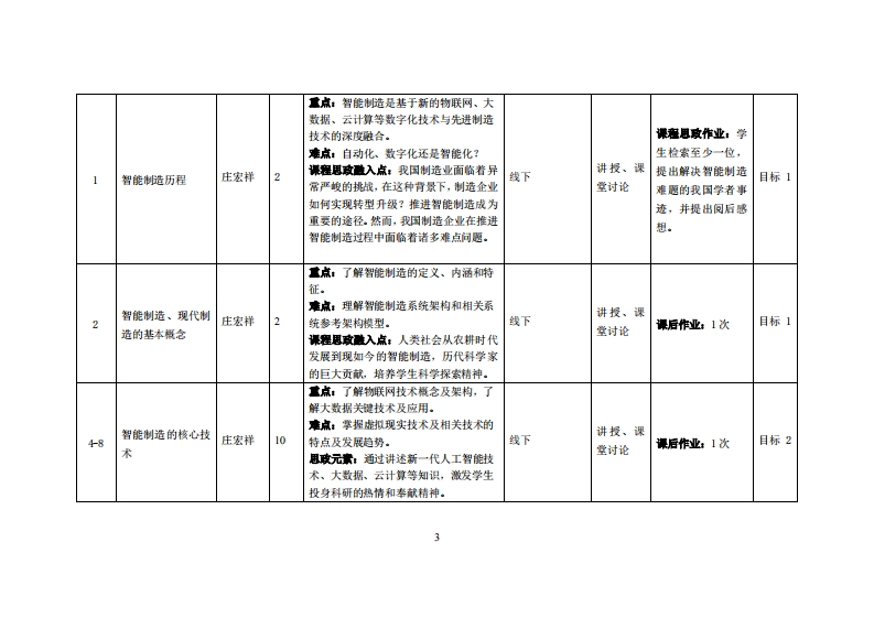 《智能制造概论》教学大纲课避名称,智能制造概论课和类别(必旅选修),必棒课程英文名称:Introduction to Intelligent Manufacturing总学时周学时学分,3222其中实险实液学时,0先修课塞:无后续课程支撑工业机器人技术基础授课时间:520周第1-2节授课地点:实验楼305课对津:2022德制造1薤开裸学陕:粤合产业科妆学陕任课就师姓名称:庄宏样/教授答展时间、地点与方式:课间任何时段:课后预约即可课程考楼方式:开卷()闭卷()课程论文()其它(√)使用微村:李培根高亮.智能制造概论[M.北京:清华大学出版社,2021年5月.妆学事考资料:1]陈明.智能制造导论M.北京机械工业出版社,2020年1月.②周济,李培根智能制造导论M0.北京:高等救青出版社2021年3月.课程情介《智能圳造额论》是智能制造、机械电子工程等专业的*专业+“拓展课程。也是一门专业青蒙课。智能制造是由智葡机器和人类专末共同组成的人机一体化智能系绕,其日益成为未来制造业发晨的核心内容。该课程从制造技术的流进出发,温过介细物能制造的基本新老、体架构、核心拉术、真1