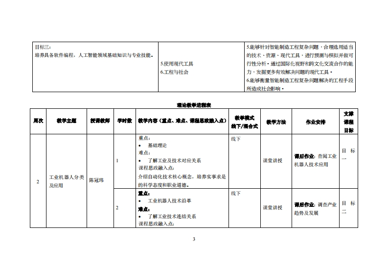 《机器人编程与仿真》教学大纲课避名称:机器人编程与仿真课和类别(必修选修)事选修课程英文名称:Robot Programming and Simulation总学时周学时学分,48w3/3其中实检实液学时,0/24先修课是:后续课程支撑,授课时间:419周1-3节授课地点:实验楼503机房课对津:2021智能制造1班、2021智能制造2班开裸学陕:粤台产业科技学院任课就师姓名称:陈冠纬/讲师答展时间、地点与方式:,课狸考楼方式:开卷()闭卷()课程论文()其它()使用微村:机器人操作系统(ROS)及仿真应用妆学事考资料:线下:L1.《机器人操作系统(ROS)及仿真》机械工业出版社卢泽生编着:ISBN:9787111709718线上:1.MOOC https:/sychaichangkun.gitbooks io/ros-tutorial-icoursel63/content/chapter 1/Robot Operating System https:/www.rosorg/课程情介:机器人编程与仿真分成两大部分,分别为机械臂编程仿真及机器人编程仿真。机械臂编程主要由机械结构破遥,由移动方式及控制仿法深入讲解,先引领学生使用Uiv©salR©t仿真软件熟悉控制板元件,并透过实际控制华数机械臂建立学生基本操作能力.此外,将带入基本运动学计算及正逆运