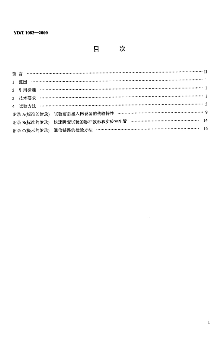 YD中华人民共和国通信行业标准YD/T1082-2000接入网设备过电压过电流防护及基本环境适应性技术条件Technical requirements for the protectionagainst overvoltages and overcurrents and the suitability in basicenvironment on access network equipment2000-09-15发布2000-09-15实施中华人民共和国信息产业部发布