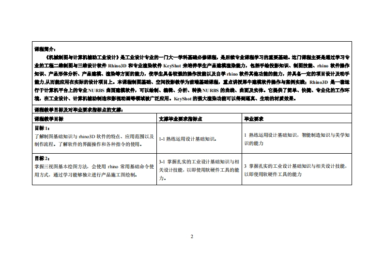 《机械制图与计算机辅助工业设计》教学大纲课避名称,机械制图与计算机辅助工业设计课和类别(必修选修):必修课程英文名称:Mechanical Drawing and Computer Aided Industrial Design总学时周学时学分,48W6/3其中实检实液学时,24先修课程:设计素推、设计盖、创新思健后续课程支撑设计息维与美学、产品设计授课时间:13-16周星期一9-11节、911周星期五9-11节、授课地点:实验楼503机房9-17周星期日9-11节提课对谦:23纸工业设计开裸学洗,粤台产业科技学院任课效即姓名薄:李林林/讲师答票时间、地点与方式:每周1、3晚18:00-20:00线上课程考楼方式:开卷()闭卷()课程论文()其它()(提交作品)使用教村,《Rhio7厚利建模)收学事考度料:中文版Rio盖培训妆程、B站