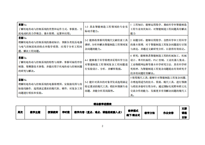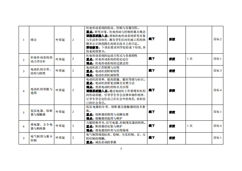 《机电传动与控制》教学大纲裸应名称机电传动与控制课类别(必修选修),专业进修课程英文名称:旦ec女omechanical Drive and Control总学时周学时学分,322/2其中实检实减学时,8先熊课程:高等数学、电工电子技术后续课程支撑机电一体化系统设计、无人机设计组装与制作漫课时间:1-16周星期二34节餐裸地点:莞城6411R,机电楼204电工实验室课对津:2023智能制造系1、2班开裸学瑰:粤台产业科技学院任课救师姓名琳:叶荣冠副教授鞭时间、地点与方式课后的一节课、实验楼307R、面答/微信、o伍chor:每周一34节课课是考方式:开卷()闭卷()课程论文()其它():报告使用微村,凌永成,机电传动控制(第3版),机械工业出版社,2024年4月。妆学考资料:程完平,机电传动控制(第5版),华中科技大学出版社,2021年6月。课程物介:《机电传动与控制》课程是智能制造专业人才所需电学知识结构的主体,是学生学习和掌握机电设备电气传动与控制知识的主要途径。通过本课程的教学,使学生了解机电传动控制的一般原理和基础知识,掌握分析、设计和使用机电传动控制系统和装置、器件的基本技能,获得机电工程师必备的知识储备和技能训练。课程妆学目标及对毕业要求州标点的支排:裸程妆学目标支排毕业要求指标点业要求