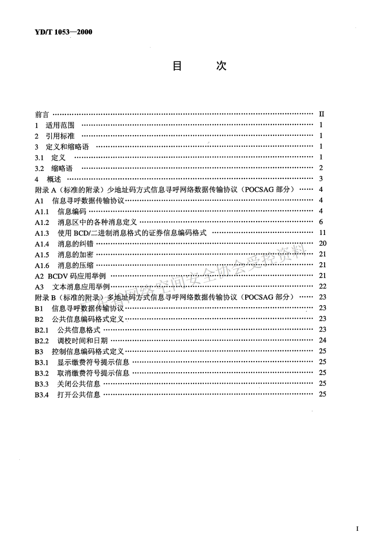 YD-T-1053-2000348072@abc4个月前发布关注私信1.07MB29页041YD-T-1053-2000此内容为付费资源,请付费后查看¥21¥31黄金会员免费钻石会员免费立即购买您当前未登录!建议登陆后购买,可保存购买订单付费资源 第1页 / 共29页 第2页 / 共29页 试读已结束,还剩27页,您可下载完整版后进行离线阅读 THE END标准规范 文本预览 YD中华人民共和国通信行业标准YD/T1053-2000信息寻呼网络数据传输协议(POCSAG分)会受控资料Data Transmission Protocol for Information Paging Network广东省网络空0CSAG Pan2000-03-23发布2000-03-23实施中华人民共和国信息产业部发布 查看更多 收起部分 喜欢就支持一下吧收藏