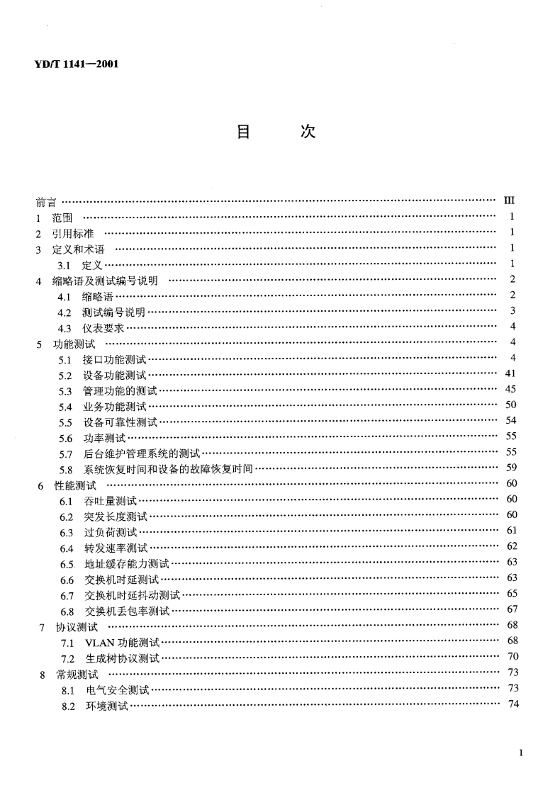 YD-T1141-2001348072@abc4个月前发布关注私信1.81MB79页020YD-T1141-2001此内容为付费资源,请付费后查看¥21¥31黄金会员免费钻石会员免费立即购买您当前未登录!建议登陆后购买,可保存购买订单付费资源 第1页 / 共79页 第2页 / 共79页 试读已结束,还剩77页,您可下载完整版后进行离线阅读 THE END标准规范 文本预览 YD中华人民共和国通信行业标准YD/T1141一2001千兆比以太网交换机测试方法Testing Specification for Giga Bit Ethernet LAN Switch2001-05-25发布2001-11-01实施中华人民共和国信息产业部发布 查看更多 收起部分 喜欢就支持一下吧收藏