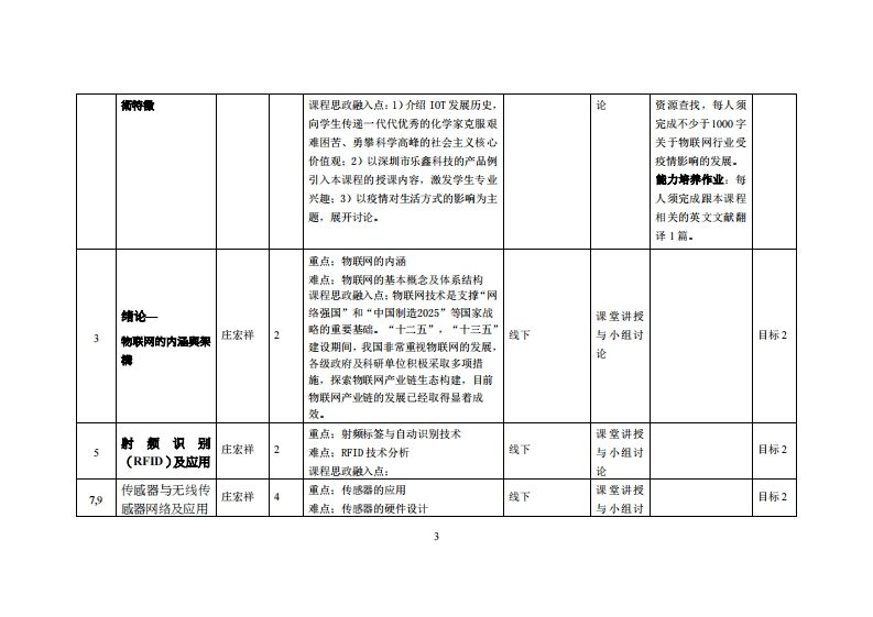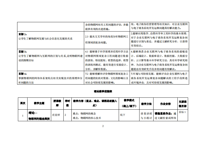 《物联网原理与技术》教学大纲裸名称:物联网原理与技术课和类别(必修选修),选修课程英文名称:Principle and Technology of Internet of Things总学时周学时学分,322/2其中实检实减学时,16先修课是:后续课程支撑授课时间:授课地点:提课对津:2021章电商开裸学桃:粤台產柔科技學院任课救柳姓名称:庄宏削教报鞭时间、地点与方式:课程考核方式:开卷()闭卷()课程论文()其它(根告)使用微村黄玉兰,《物联网技术导论与应用》,人民邮电出版社课雇情介:本课程是计科跨境电商专业的专业选修课,本课程系统地介绍了物联网技术体系,并全面介绍了万物互联的物联网智能应用。通过本课程的学习,学生应理解物联网所覆盖的知识骨景,掌握物联网的体系结构,通晓物联网的关键技术,熟悉物联网的实际应用。再者,实作并设计以传感器与ESP2微处理器为主的嵌入式系统,熟习有线与无线网路的架构,最后透过实作project让学生在各领域自行建构一个物联网的应用。课程数学目标及对毕业要求州标点的支排:裸程妆学目标支撑单业2要求指标点华业要求目标1:12能够将数学、自然科学、工程基础1能够运用数学、基础科学、计算机科学与技术、让学生了解物联网发展的社会骨景与技术骨景和人工智能技术的专业知识用于对复企业互联网平台系统、电子商务信息管理与信息系