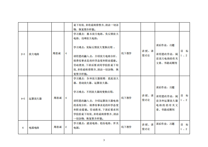 《电子电工技术》教学大纲裸程名称:电子电工拉术课和类别(必修/选修),修课程英文名称:Electronic and electrical technolo四y总学时/周学时/学分32/2/2其中实整/实液学时6先修课是:高等款学、大学物理盖赠电的后续课程支排授课时间:周三1-2节(1-16周)授课地点:莞城6211提课对律:2022工业设计开裸学洗:粤合产业科技学洗任课救甲姓名职称:周忠诚/副教授答票时间、地点与方式:课间_任何时段:课后_预约即可课程考核方式:开卷()闭卷()课程论文()其它()使用微材,《模拟电路和数字电路白学手册》,蔡杏山主编,人民邮电出版社,1SW9787115486417课程物介:本课程介绍模拟电路、数字电路和电力电子电路,主要内容有电路分析基础、放大电路、集成运算放大器、电源电路、数字电路基础与门电路、数制编码与逻辑代数、组合逻辑电路、时序逻辑电路、脉冲电路、A/D(模/数)和D/A(数/模)转换电路、控制技术、交流调压电路、交-变变频电路。它的墩学目的是培养学生具有电路学的专业知识,以及应用这些知识进行各种电路的分析方法的能力.课程兹学目标及对毕业要求指标点的支排课程教学目标支撑华业要求指标点毕业要求目标1:1-1能将数学、自然科学、工程基础1工程知识:能够将数学、自然科学、工程基础了解电工与电子技术知识,培养具有工业设计专业知识与及专业知识用于工业设计工程问题的和专业知识用于解决复杂工业设计工程问题。技能的工程技术人才表述。