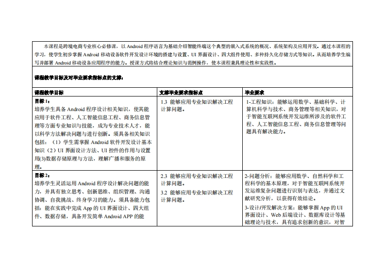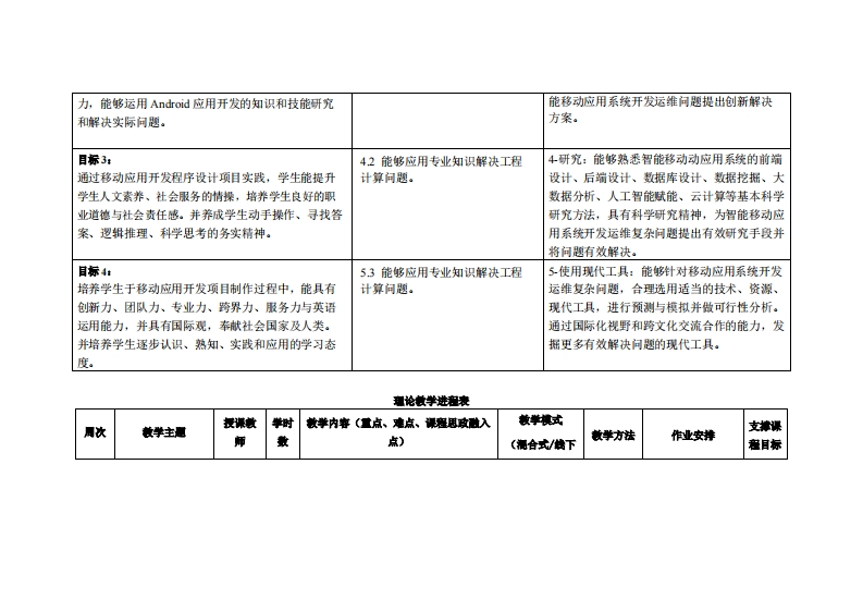 《移动应用开发》教学大纲课避名称:移动应用开发课忍类别(必修选修)必修课程英文名称:Mobile Apps Development总学时周学时学分,3222其中实险实戒学时,16先修课是:Java语言基遭后续课程支推授课时间:1-16周星期二9-10节授课地点:机房606课对津:2021级跨境电商1班开裸学洗:粤台产业科技学院任课就师姓名淋:王浩亮/刷教授答票时间、地点与方式:课堂或课后,教室或通讯软件,当面或线上答疑裸被方式开卷()闭卷()课程论文()其它(√)非试卷类报告使用被村:,App项目开发实战·鸿蒙开发入门·款学考资料:[1叮黑马程序员Android移动开发基础案例教程(第2版)M,北京:人民邮电出版社,2021年8月2]祝永志Android移动应用开发教程M,北京清华大学出辰社,2018年5月.[3]兰红,李淑芝Android Studio移动应用开发从入门到实战-微课版M.北京:清华大学出版社,2018年11月.课难摘介: