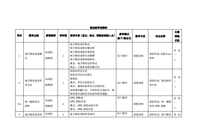 《系统分析与设计》教学大纲课避名称:系续分析与设计课和类别(必修选修)·选修课程英文名称:System Analysis and Design总学时周学时学分,322/2其中实检实液学时,16先继课是:JAVA语言应用开发后续课程支撑量据花调与数据仓库授课时间:2、418周基期四34节授课地点:兆城2209提课对津:2021计算机科学与技术诗携电商电商1班博)/22计技二学位开裸学洗:粤合产业科妆学陕任课师姓名落:林明灶/副敏战答鞭时间、地点与方式:1每次课前和课后,实验楼307,采用一对一的问答方式:2每次习题课,采用集中讲解方式。课程考核方式:开卷()闭港()课程论文()其它(√)使用微材《情惠暴绕分新与设计》,杜州、整膏地、王洪英、屈膏地、赵漏晶,第3版1SBN978732576433,清华大学出版壮。妆学考资料:1.各精品资漂共率课网站。课避物介:本课程系统介绍当前电子商务系统的两种主流开发方法为主线,系统地介绍电子商务系统的相关概念以及电子商务系统规划、分析、设计、实施和运行维护的内容、步骤、技术及工具在结构上分为4个部份:L,基础部分,主要介绍电子商务系统的基本概念、常用开发方法及开发工具:2分析与设计部分,主要介绍电了子商务系统规划、分析与设计的内容、步骤、方法和应用过程: