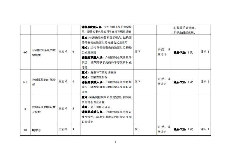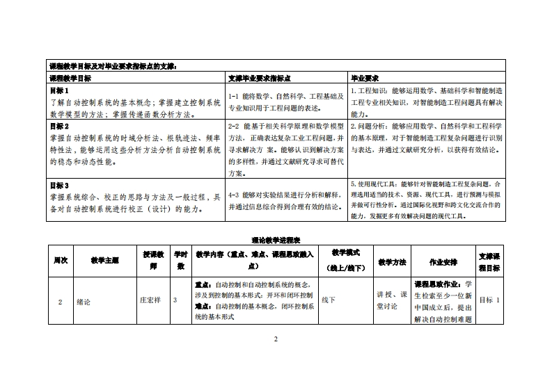 《自动控制》教学大纲课避名称:自动控制课和类别(必修选修):选修课程英文名称:Automatic Control总学时周学时学分,48/33其中实险实玻学时:0先继课是:高等数学后续课程支排工业机器人技术基础授课时间:2、418周基期三57节授课地点:机电楼312课对津:2020物德制造1班、2班开裸学陕:粤合产业荆妆学陕任课放甲姓名淋:庄宏样/教授答展时间、地点与方式:课间任何时段:课后预钓即可课狸考楼方式:开卷()闭卷(√)课程论文()其它(√)使用微村:余成波,张莲,胡晓倩主编,《自动控制原理》,清华大学出版社,第3版,2018年7月.妆学考责料:1.期海松主施。《自动控制厚理),科单出版社第7版,2019.2.物轨槽主槽,《自动控制八速》,科学出版社,第四版,2017.课程情介:《自动控制》是在自动控制、电气工程、信意工程以及计算机技术学科发盖随上速立起来的一门理论与实表相结合的课程,其讲述了自动控制理论中经典控制想论部分,是自动化专业要的专业基赠课,在直动化专业人才培养中具有丰常要的作用。本程是自动化专业的专业核心课程,主要讲授分析和设计反镇控制系统的经典理论和应用的方法,内客包括自动拉制系统的基本餐老,自动拉喇系统的数学模型,自动控制系统的时域分析法、根轨迹法、颜率特性法,控制系统的放正,离散控制系统的分析和镰合等,是一门理论性和实用性很夏的课程。