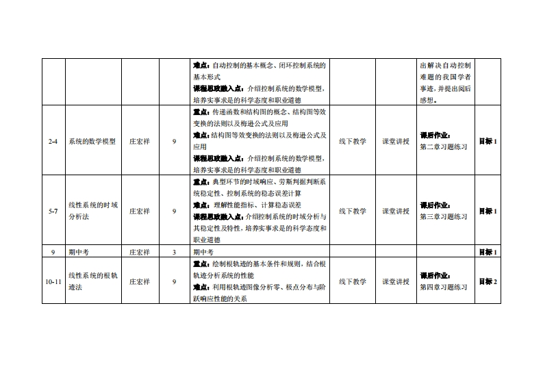 《自动控制原理》教学大纲裸避名称,自动控制原理课和类别(必修选修)必修课程英文名称:AutomaticControl Principle总学时周学时学分,48型33其中实险实液学时,6先继课是:高等数学、线性代数后续课程支撑机电传动与控制、工业机器人技术基础、数控加工与编程授课时间:1-16周星期四1,3节授课地点:莞城6409课对津:2023智能制造1班开裸学陕:粤台产业科技学院任课就师姓名淋:庄宏样/教授答展时间、地点与方式:1每次课的课前、课间和课后,采用一对一的问答方式:2每次习题课,采用集中讲解方式。课狸考核方式:开卷()闭港(√)课程论文()其它()使用村,《自动控制原理》,邹见效主编,机械工业出版社,SBN:978711155652。◆考妆村:《自动控制原理》,胥布工主编,电子工业出版社,ISBN:9787121279539。课在物介:《自动控制原理》是智能制造工程专业的一门重要的学科基础选修课程,亦是控制相关课程体系中的核心和主干课程,其主要内容包括了线性控制系统的数学建模、时域分析、根轨迹分析、频域分析、校正方法和校正装置设计,以及带入了非线性控制系统和离散控制系统的分析方法。《自动控制原理》是学生学习“计算机控制系统”、“运动控制系统”、“过程控制系统”、“电机控制等专业课程必需的基础知识,为学生日后从事控制系统性能分析、控制器设计等工作莫定基础。课程教学目标及对华业要求州标点的文排: