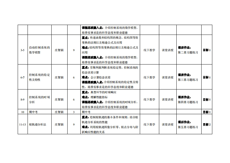 《自动控制原理》教学大纲裸寇名称,自动控制原理课类别(必修选修)多必修课程英文名称:Automatic Control Principle总学时周学时学分,4833其中实检实减学时,0先继课是:高等数学、线性代数后续课覆支撑机电传动与控制、工业机器人技术基础、数控加工与编程漫课时间:217周星期一1-3节授操地点:实验楼305提课对津:2022智能制造1班开裸学桃:粤台产业科技学院任课批师姓名淋:庄智领/副教授答鞭时间、地点与方式:1每次课的课前、课间和课后,采用一对一的问答方式:2每次习题课,采用集中讲解方式。课狸考核方式:开卷()闭港(√)课程论文()其它()使用藏材,《白动控制原理》,胥布工主编,电子工业出版社,1SBN:9787121279539。课程信介:《自动控制原理》是智能制造工程专业的一门重要的学科基础选修课程,亦是控制相关课程体系中的核心和主干课程,其主要内容包括了线性控制系统的数学建模、时域分析、根轨迹分析、频域分析、校正方法和校正装置设计,以及带入了非线性控制系统和离散控制系统的分析方法。《白动控制原理》是学生学习“计算机控制系统”、“运动控制系统”、“过程控制系统”、“电梯控制、“电机控制等专业课程必需的基础知识,为学生日后从事控制系统性能分析、控制器设计等工作莫定基础。课程放学目标及对毕业要求指标点的支排:课应妆学目标支撑单业求指标点华业要球