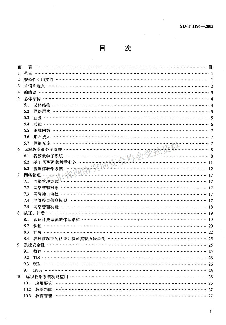 YD-T-1196-2002348072@abc4个月前发布关注私信1.52MB32页050YD-T-1196-2002此内容为付费资源,请付费后查看¥21¥31黄金会员免费钻石会员免费立即购买您当前未登录!建议登陆后购买,可保存购买订单付费资源 第1页 / 共32页 第2页 / 共32页 试读已结束,还剩30页,您可下载完整版后进行离线阅读 THE END标准规范 文本预览 YD中华人民共和国通信行业标准YD/T1196-2002基于P网络的远程教学技术要求Technical specification of distance learning on IP network广东省网络空间安全协会受2002-06-21发布2002-06-21实施中华人民共和国信息产业部发布 查看更多 收起部分 喜欢就支持一下吧收藏