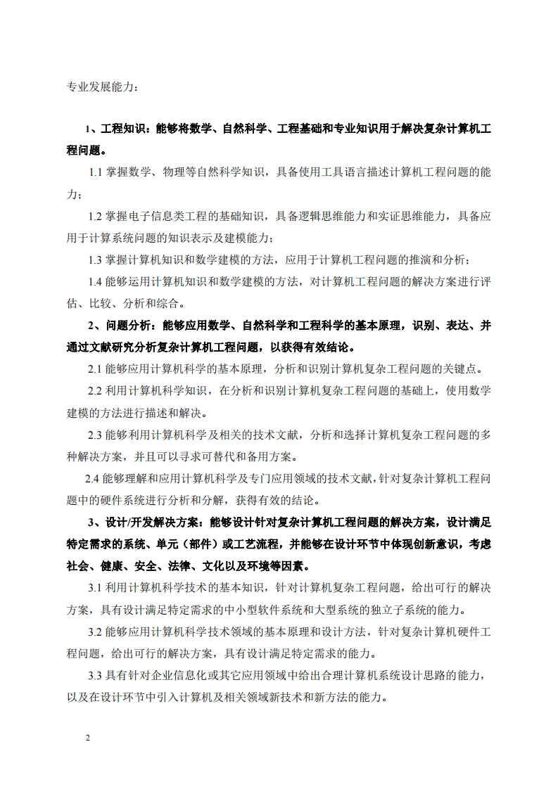 计算机科学与技术专业人才培养方案一、专业名称、代码专业名称计算机科学与技术学科门类工学二级类计算机类专业代码080901英文名称Computer Science and Technology二、专业培养目标本专业培养德、智、体、美、劳全面发展,具有社会和环境意识,掌握数学与自然科学基础知识以及与计算机系统相关的基本理论、基本知识、基本技能和基本方法,具备计算机软硬件技术的应用能力、工程实践能力及团队协作能力,面向地方经济,能在信息技术企业和其它行业的信息技术和管理部门从事计算机应用研究、软件系统设计、开发、测试、管理与维护等工作的高素质应用型人才。毕业后五年的预期目标:目标1、能够综合运用数学与自然科学知识、计算机知识及现代信息技术方法解决计算机应用领域的复杂工程问题。特别是承担计算机软硬件系统的设计、开发、管理与实现方案。目标2、具有较强的项目管理和沟通表达能力,具备团队分工协作和发挥领导作用的能力。目标3、具有人文社会科学素养、职业道德、社会责任感,并能够在工程实践中考虑法律、安全、环境和可持续发展等因素的影响。目标4、具有国际视野、创新意识和终身学习的能力,实现能力和技术水平的提升,能够在计算机应用技术及相关领域具有职业竞争力。目标5、能够在T相关行业具有就业竞争力,具备中级技术职称人员的工作能力,能够成为单位的业务骨干,并有能力进入研究生阶段学习。三、毕业要求经过4年的专业学习,毕业生应当具备以下基本的社会职业发展能力和基本的学科