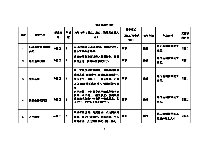 《计算机辅助工业设计实务》教学大纲裸程名称:计算机轴助工业设计实身课程类别(必修/选修),必修课程英文名称:Computer Aided Industrial Design总学时/周学时/学分:48/3/3其中实险/实戒学时,32先修课程:机械制田与计算机辅助工业设计后续课程支撑:产品设计与模型制作授课时间:1-16周周四2-4节提课地点:实605提课对津:2024鞭工业设计1班开课学洗:粤台产业科放学陕任课数即姓名/职:马居正/讲师容疑时间、地点与方式:1.课堂:每次课前、课间和课后进行答展:2.线上:通过邮件线上答鞭。课程考核方式:开卷()闭卷()课程论文()其它(√)使用敏材:《工程制图(英汉对哪)】胡琳机械工业出版牡课程简介:本课程是工业设计专业本科生的专业必售课。课程主要学习Sol1orks软件,Sol1山0ks能够提供不同的设计方案、减少设计过程中的情误以及提高产品质量。而且对每个学生来说,操作情单方便、晶学易用。课程妆学目标及对毕业要求州标点的支撑:课程放学目标支撑单业要求指标点毕业要求目标1:11掌握工业设计的基础知识,能清所本课程是工业设计专业的基曲必修课,是为设计类专业打地将设计想法呈现。毕业要求1-熟练运用设计基础知识,智能制造知识基础的量要课程。通过此课程的学习使学生了解1,2能够理解智能制造的基本振老和原与费学知识的能力,So11doks的使用,并学习运用到来来的产品设计上。理来实现设计的目标,