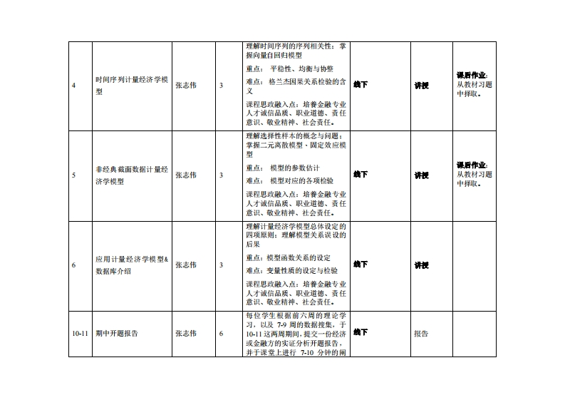 《计量经济学》教学大纲课程名称:计经济弹课程类别(必修进修):选修课程英文名林:Eco阳ometrics总学时周学时学分:48/33其中实验实藏学时:16先修课是:现经济学、安现经济学、线性代谦、振率论与意速统计授课时间:每周一57节14:30-17:10)我裸地点:提课对橡:20绿金敢1斑开裸学愧:事合产业科技学洗任课敏师姓名职称:张志怖/妆授答凝时何、地点与方式:栋合实险大楼208课程特技方式:开港()闭卷()课程论文()其它()使用做村:李子来,滑文卿:《计量经济学)高等就有出版社做学事考责料:陈温:《高饭计量经济学及Saa应用(第2版)》易丹海:《兼据分析与Eviews应用》张文形:《SPSS统计分析盖德妆程》胡流冬、董辰辉年《Maab从入门到精通)排兼、陈立萍:《R语言实用就》课程简介计量经济学是以经济道论为州导,以数据事实为依据。以数学、饶计学为方法,以计量分析款件为工具,新究经济关暴和经济活功嫩量规靠及其应用,并以速立计量经济慎型为恢心的一门经济学学料,其视本任务是估计经济模型和险脸经济慎型。课程妆苹目标本课程与苹生核心能力培养之间的关联授课一、知识目标:对康为理工科专业举生的课程填写此栏):上。了解计量轻济举作为一门独立学科的主要思想和爪速:核心能力1.Ad2。掌基本的经典计量经济学理论与方法。c核心能力2.B2二、能力目标:被心能力3.B4