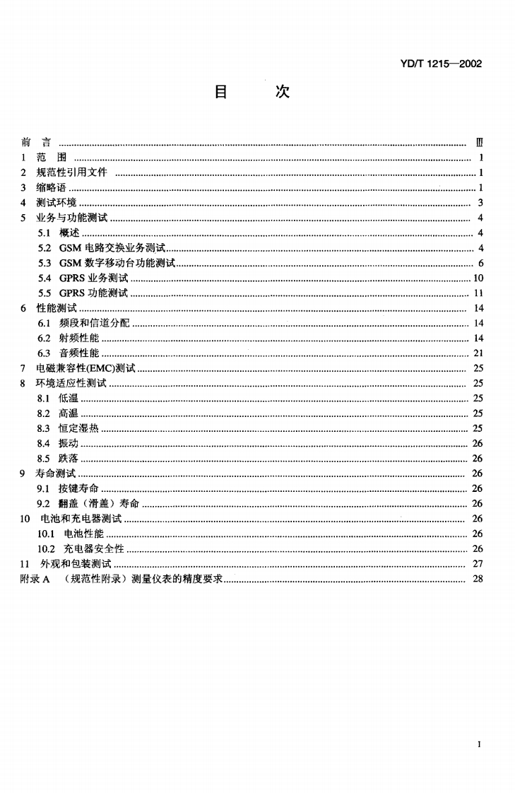 YD中华人民共和国通信行业标准YD/T1215-2002代替YD/T884一1996900/1800 MHz TDMA数字蜂窝移动通信网通用分组无线业务(GPRS)设备测试方法:移动台900/1800MHz TDMA digital cellular mobile telecommunication networkgeneral packet radio service(GPRS)test method:mobile stations2002-06-21发布2002-06-21实施中华人民共和国信息产业部发布